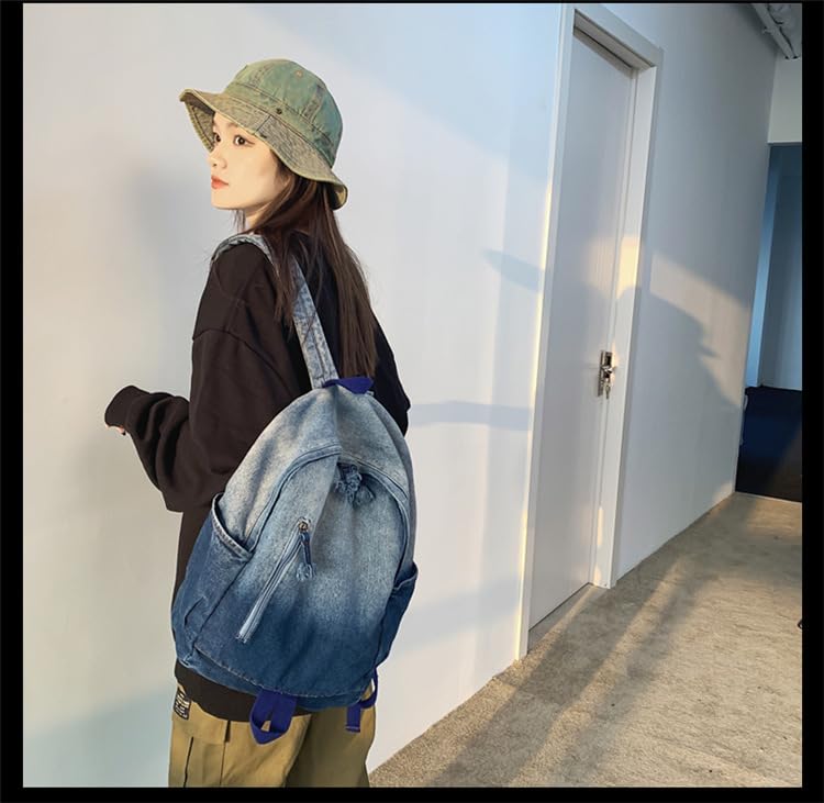 MHT BY MOHIT® New Simple Schoolbag – Denim Canvas Washed Versatile Backpack for Men & Women, Couples