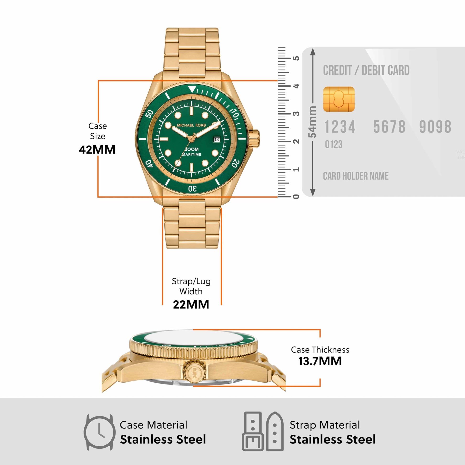Michael Kors Stainless Steel Analog Green Dial Men Watch-Mk9162, Gold Band