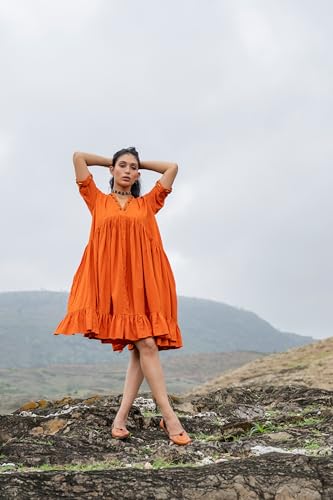 - ABOUT THE PRODUCT: Style- Ethnic Dress | Length- Mid Calf | Type of sleeve- Half Sleeve | Neck- V Neck| Colour- Orange
