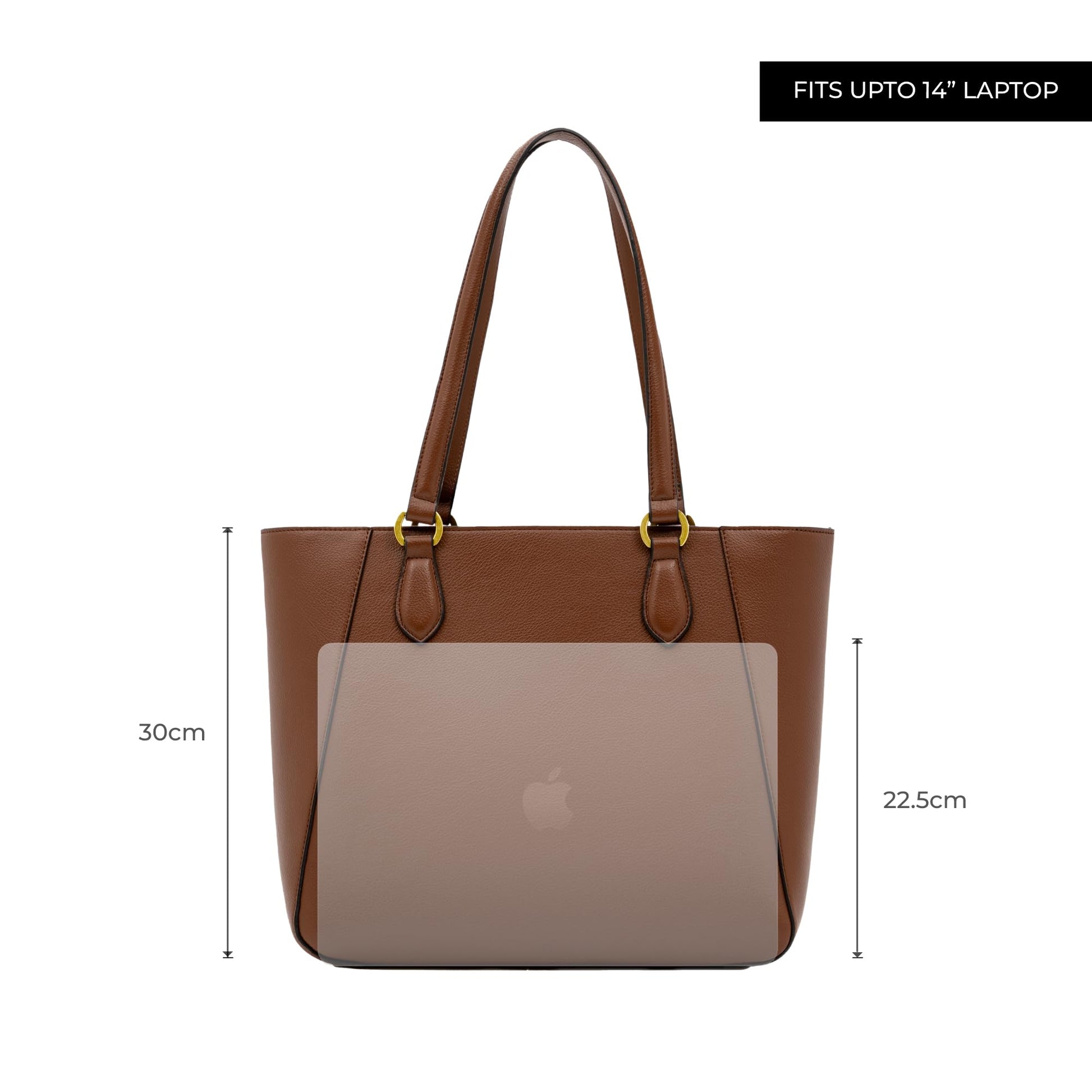 - FUNCTIONAL BAG: Measuring 41 cm (Top L) x 34 cm (Bottom L) x 30 cm (H) x 12 cm (D), with a shoulder drop of 28 cm, this tote features a zipper closure, fits your 14" laptop, has one PU zipper pocket, and two slip pockets inside for maxium storage.