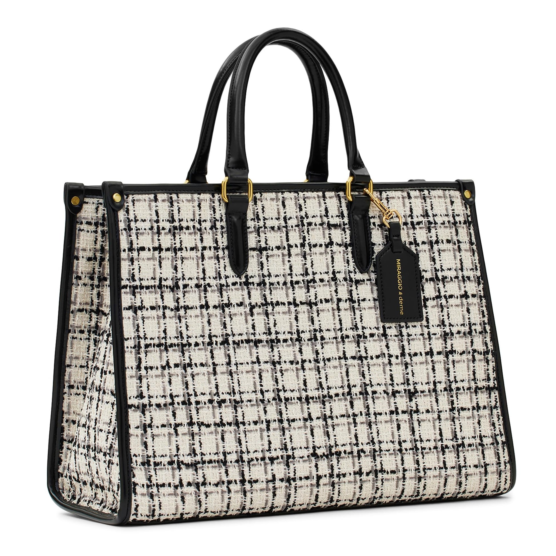 Miraggio Denice Tweed Large Sized Tote Bag with Adjustable & Detachable Sling Strap (Tweed White)