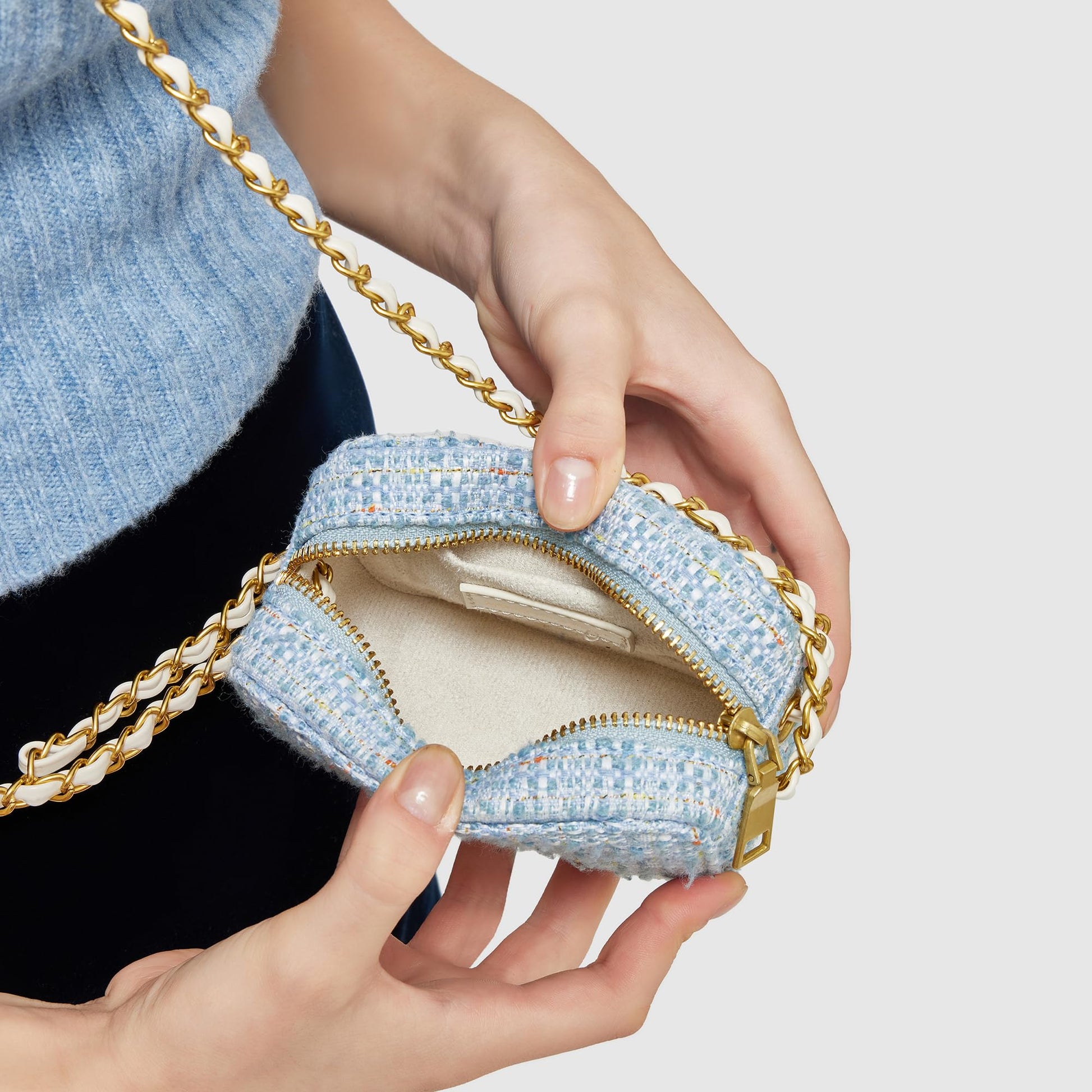 Miraggio Donna Tweed Mini Crossbody/Sling Camera Bag for Women (Tweed Blue)