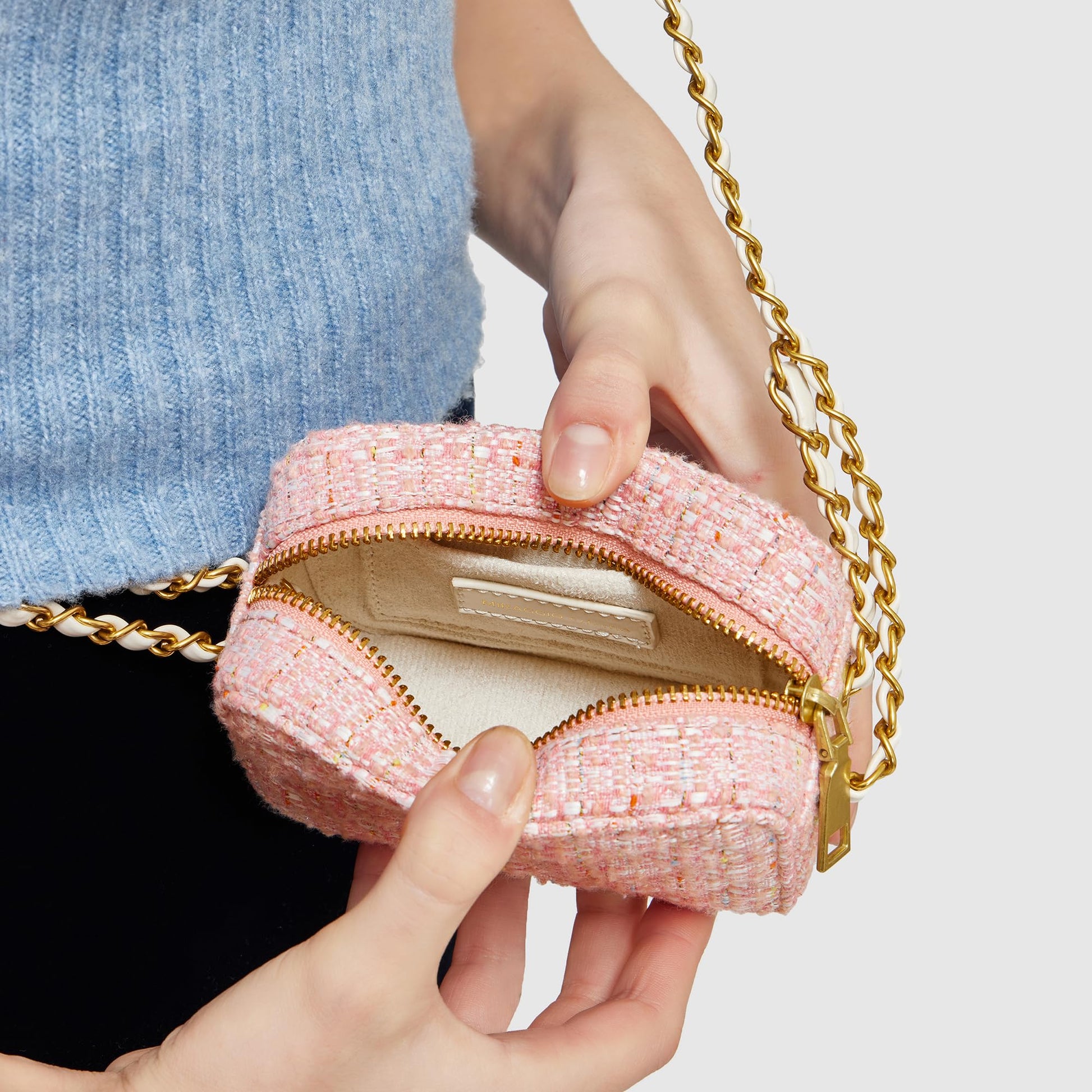 Miraggio Donna Tweed Mini Crossbody/Sling Camera Bag for Women (Tweed Pink)