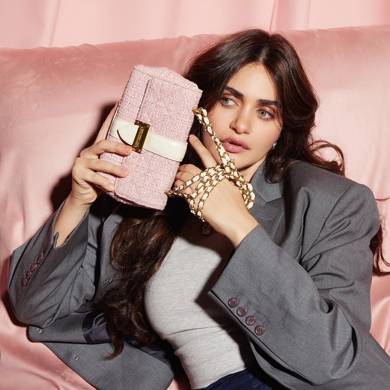 Miraggio Estelle Crossbody/Shoulder Bag with Convertible Sling (Tweed Pink)