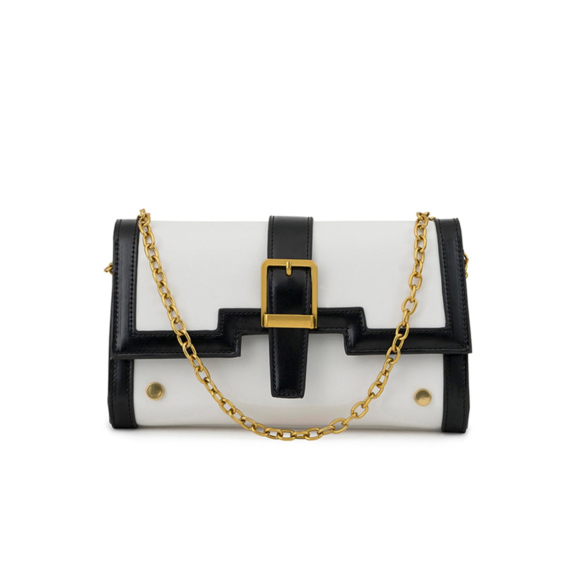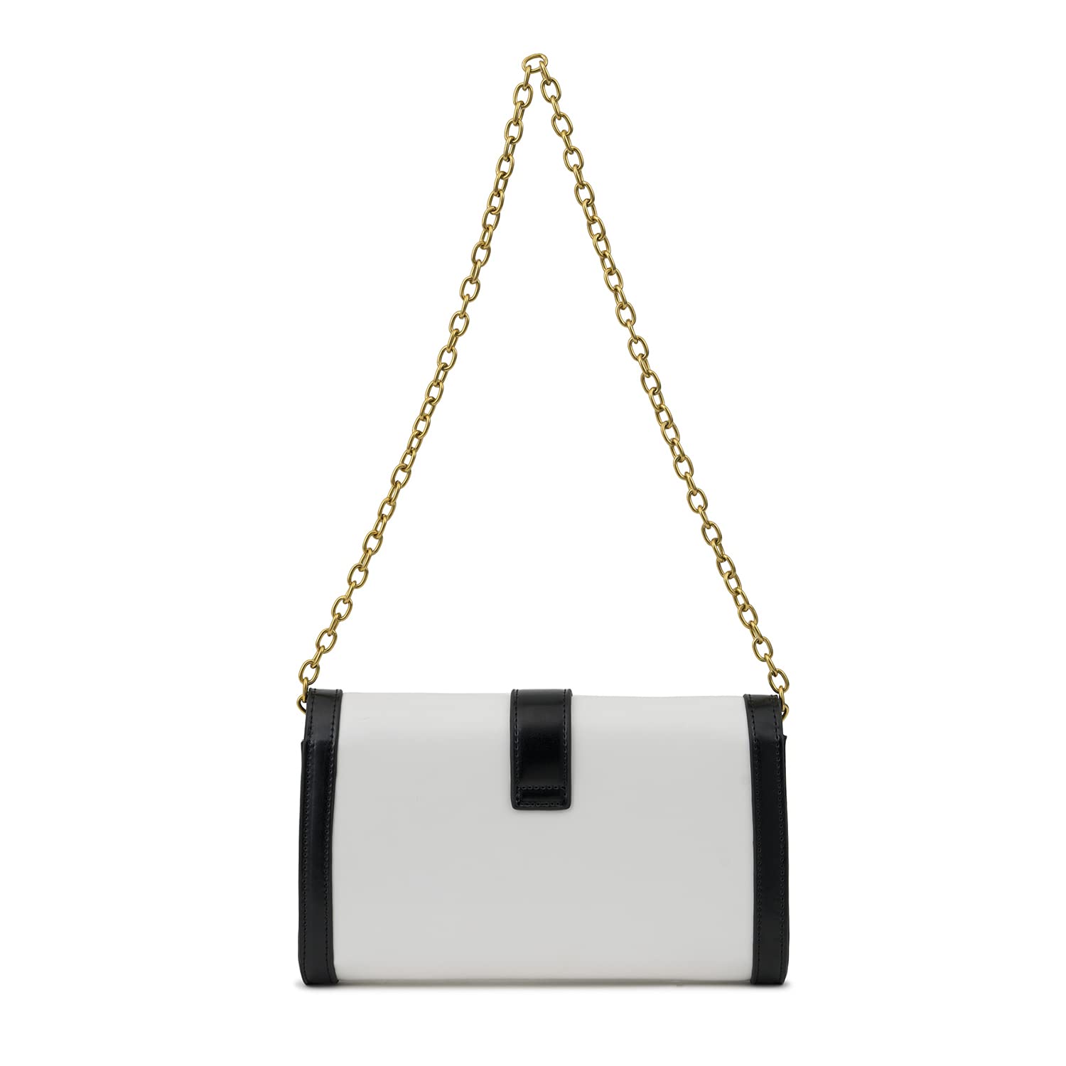 - This latest crossbody long wallet features detachable chain shoulder strap along with dark gold buckle hardware.