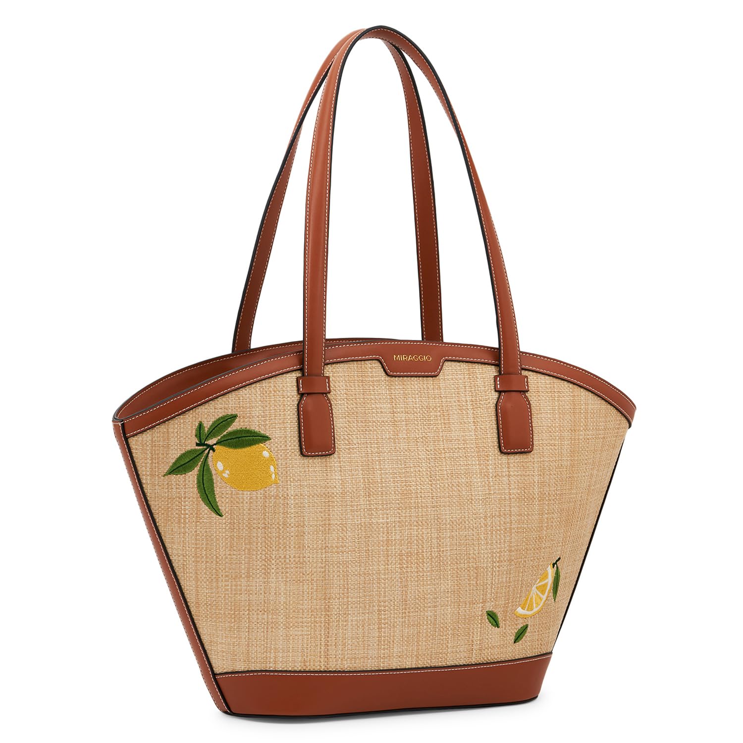 - PREMIUM MATERIAL: Made from lightweight yet durable raffia material, this women’s tote bag is elevated with contrast color thread and a lemon punch embroidery that gives it a fresh, summery look.