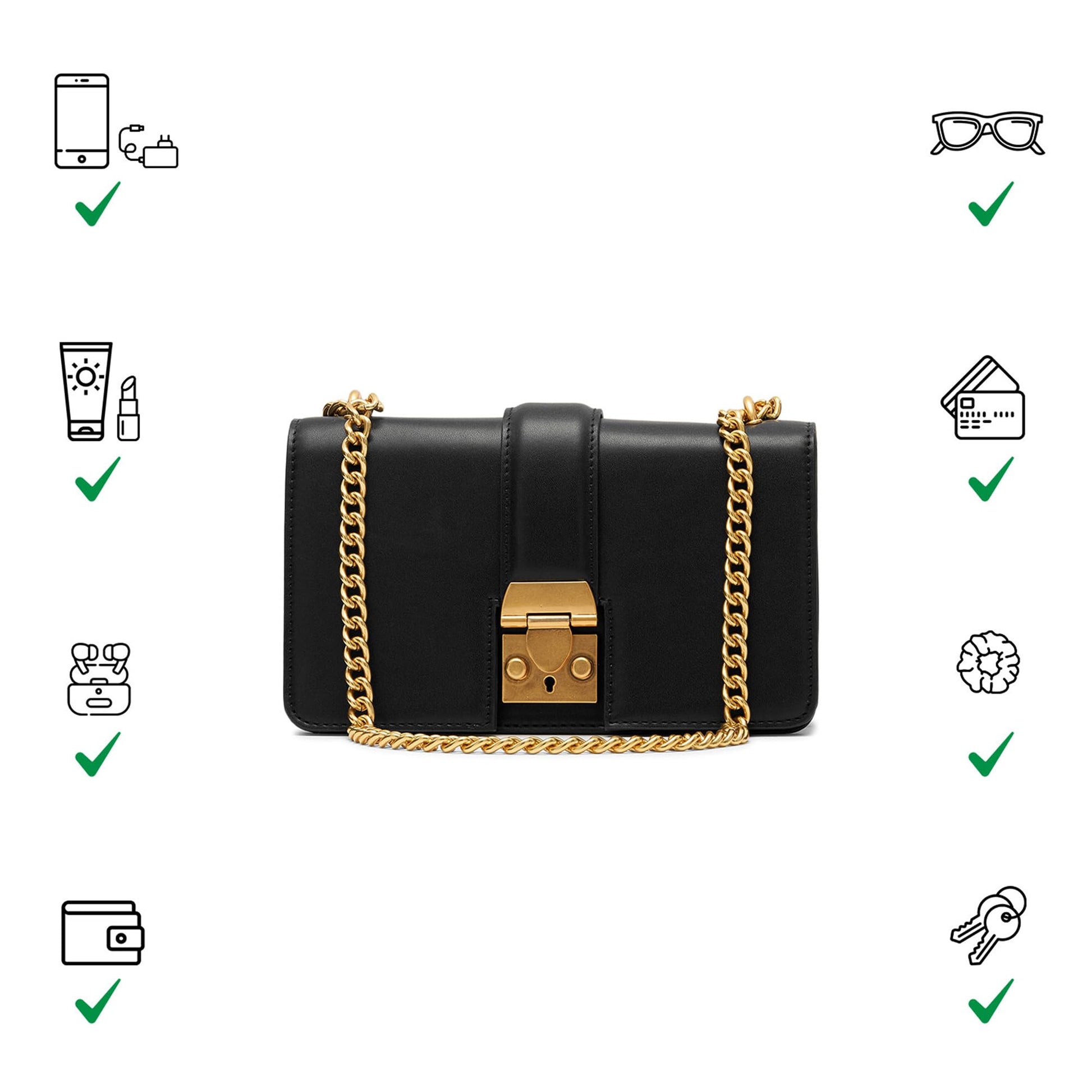 - DIMESNIONS: Length: 22cm, Height: 13cm, Depth: 8cm, Shoulder Drop: 31cm, Crossbody Drop: 54cm