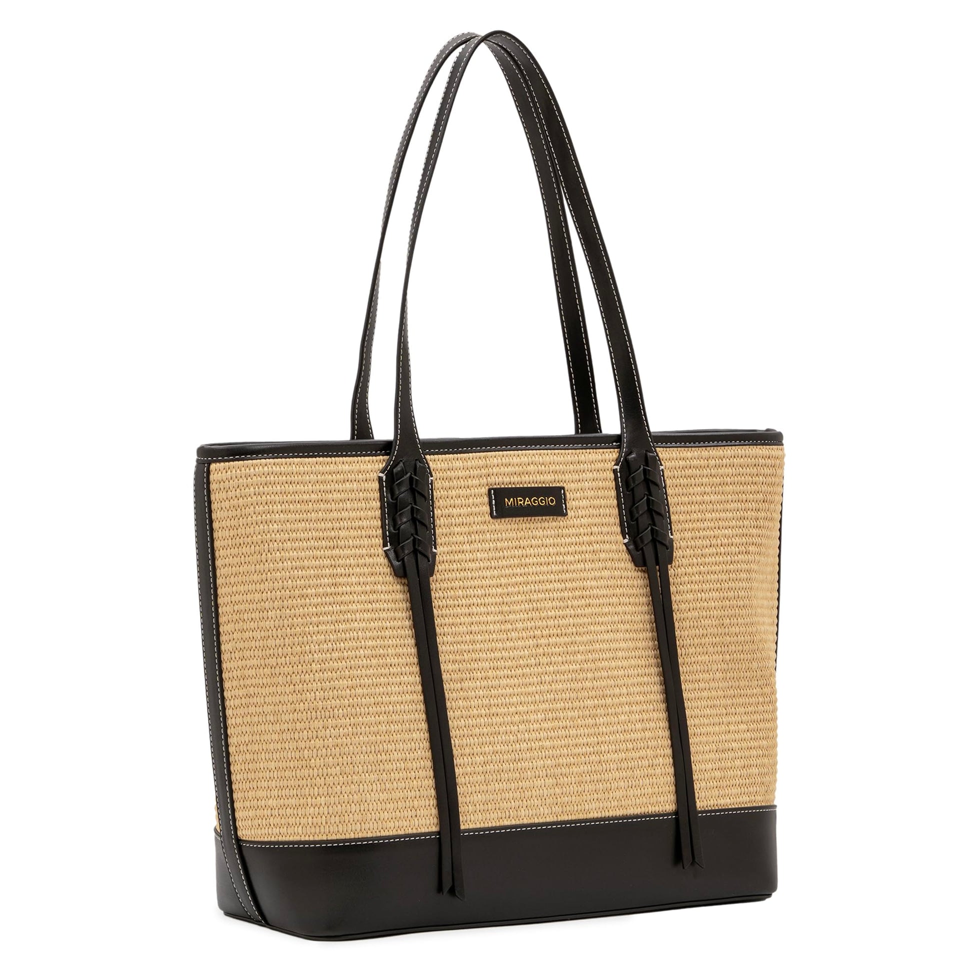 - PREMIUM MATERIAL: Crafted with a textured raffia exterior, this women’s shopper tote bag features delicate contrast thread detailing and braided tassel straps.