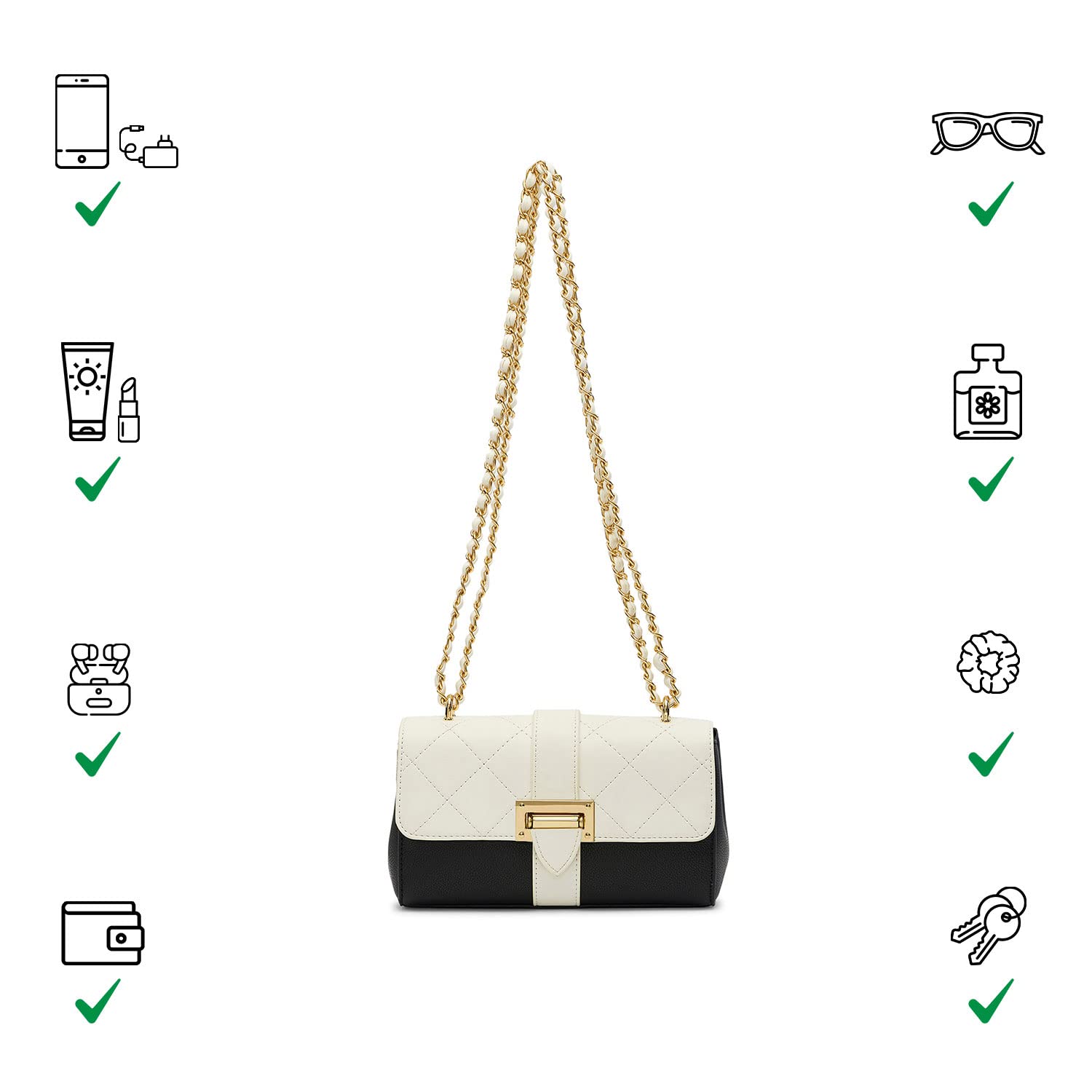 - LATEST, TRENDY, SLING FOR WOMEN: Estelle Crossbody Bag from Miraggio is as cute as it is practical and deserves a top spot in your wardrobe. This exquisite piece features dual tone and quilted flap, comes with eye-catching metal gold harware to make you look apart.