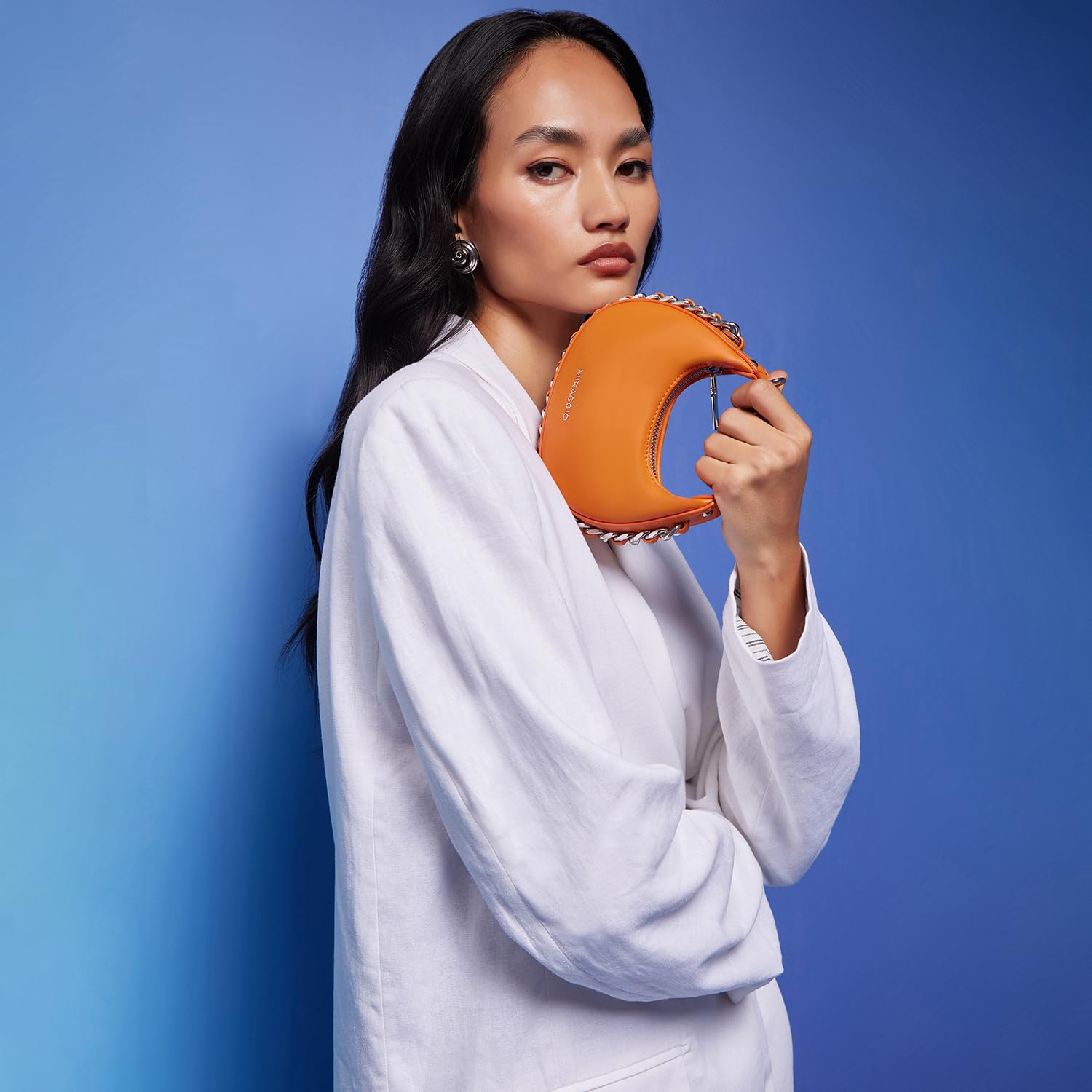 Miraggio Women Eve Mini Bag With Adjustable & Detachable Crossbody Sling Strap | Top Handle Half Moon Bag | Gift, Orange