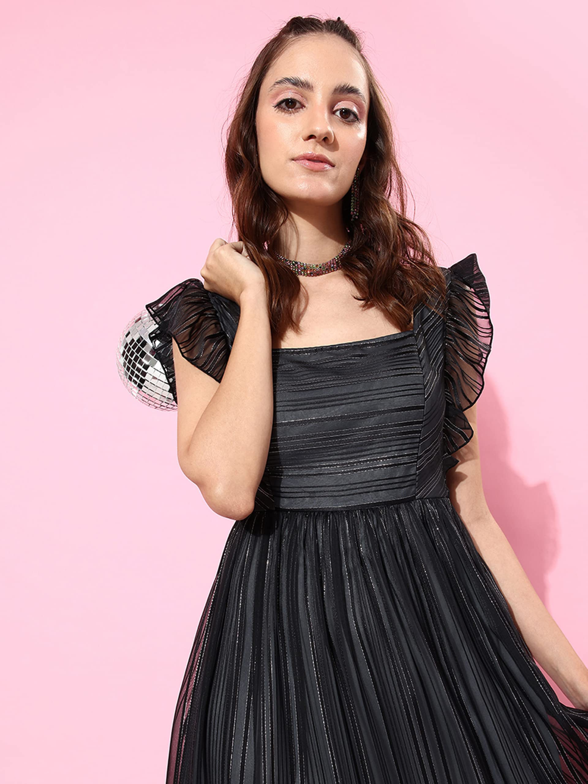 Miss Chase Women's Black Square Neck Layered Ruffles Sleeve Floral Patterned Tiered Georgette Maxi Dress (MCAW22D16-27-62-06, Black, XL)