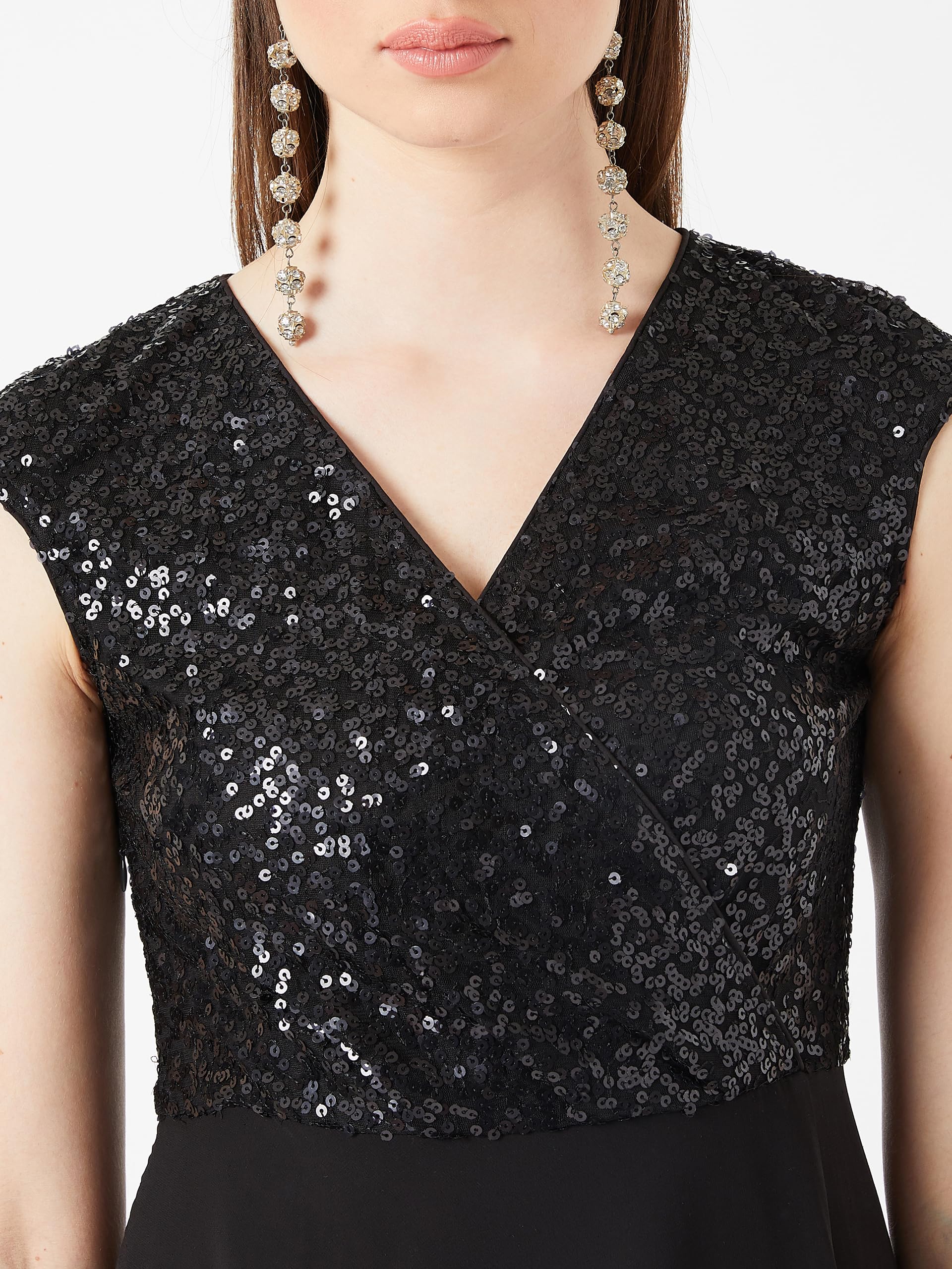 Miss Chase Women's Black V-Neck Cap Sleeved Solid Wrap Maxi Dress(MCSS20D06-10-62-04_Black_M)
