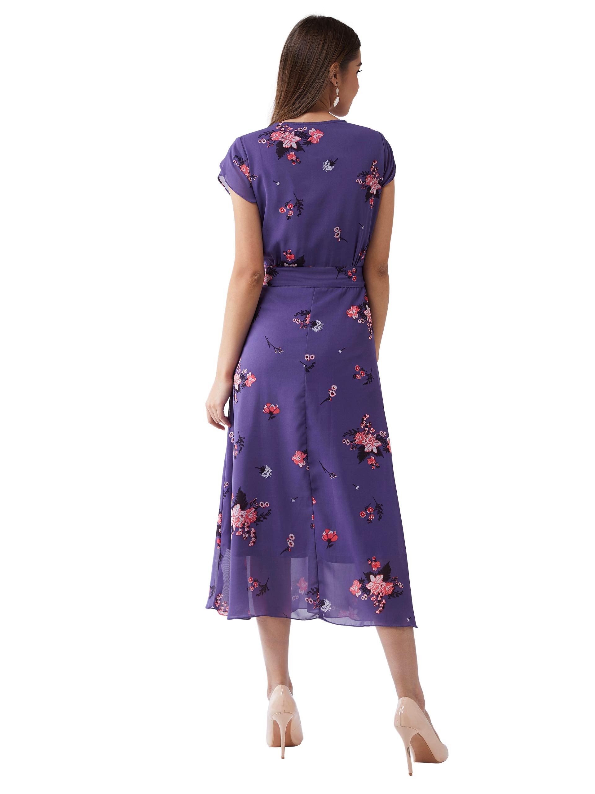 Miss Chase Women's Multicolored Base Lavender V-Neck Short Sleeved Floral Pleated Midi Dress (MCSS19D12-95-190-08, Multicolor-Base Purple, XXXL)