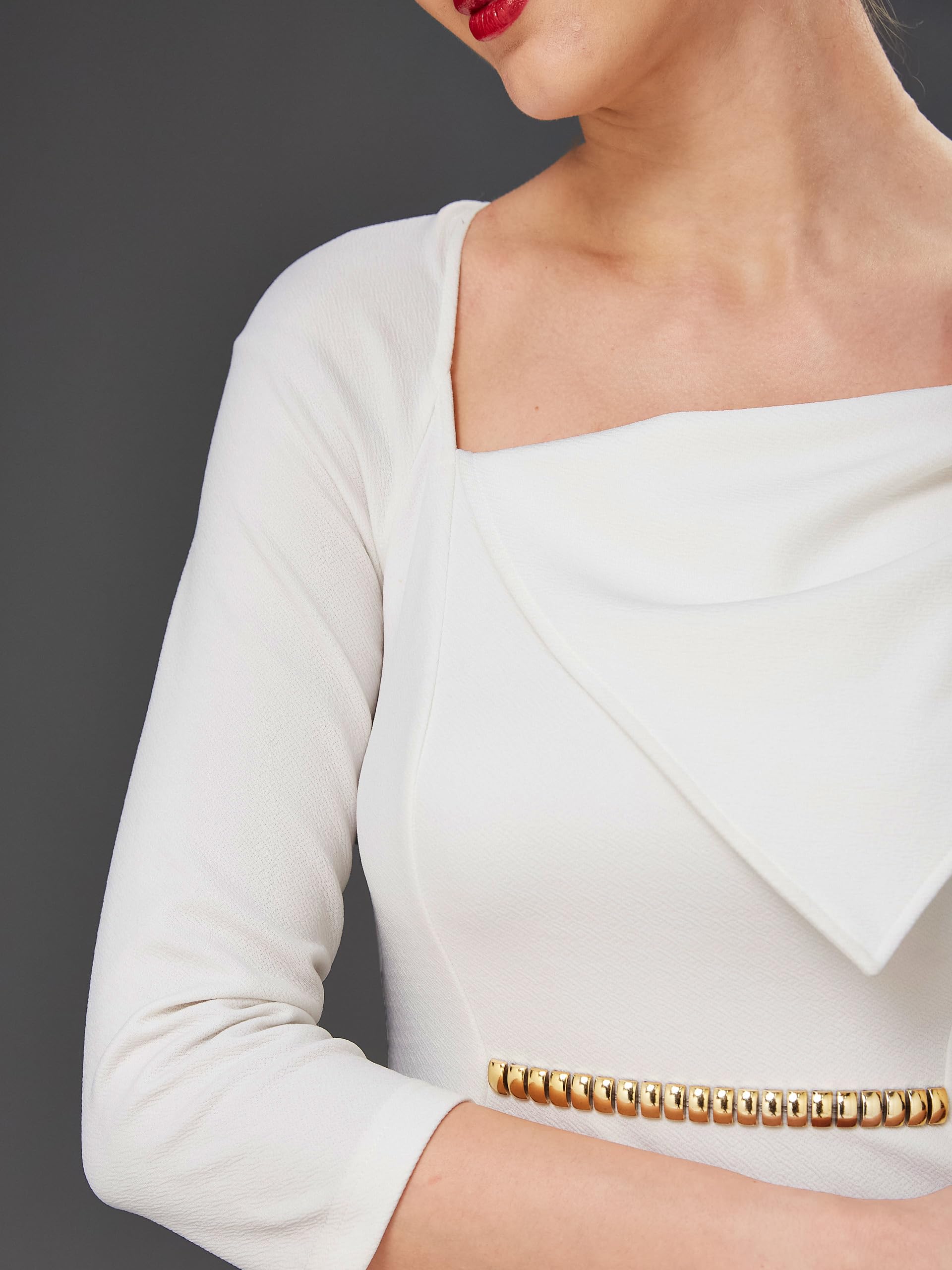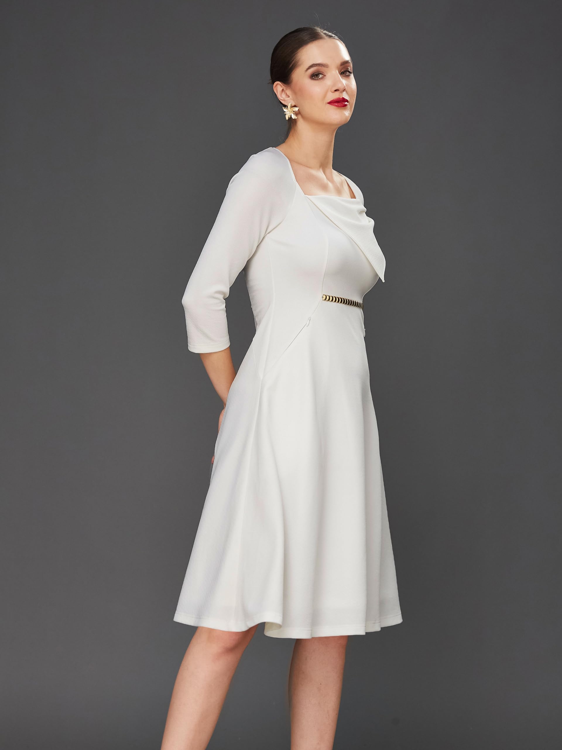 Miss Chase Women's Solid Square Neck Raglan Sleeves Side Pocketed Polyester Fit and Flare Knee Length Dress (MCSS23D16-42-114-02, Off White, XS)
