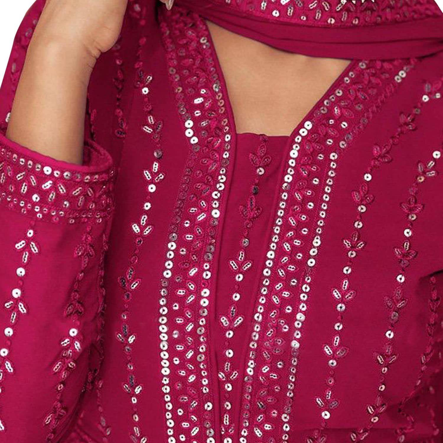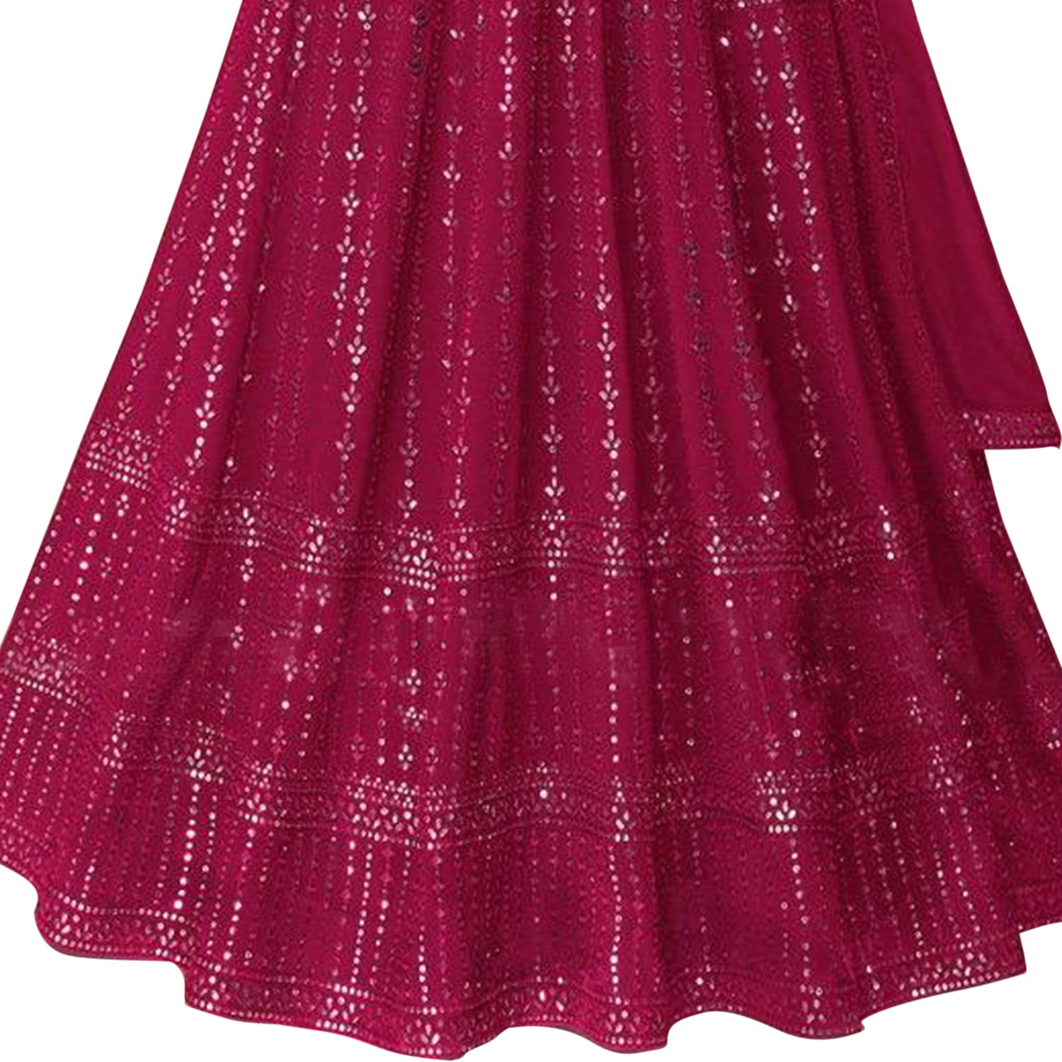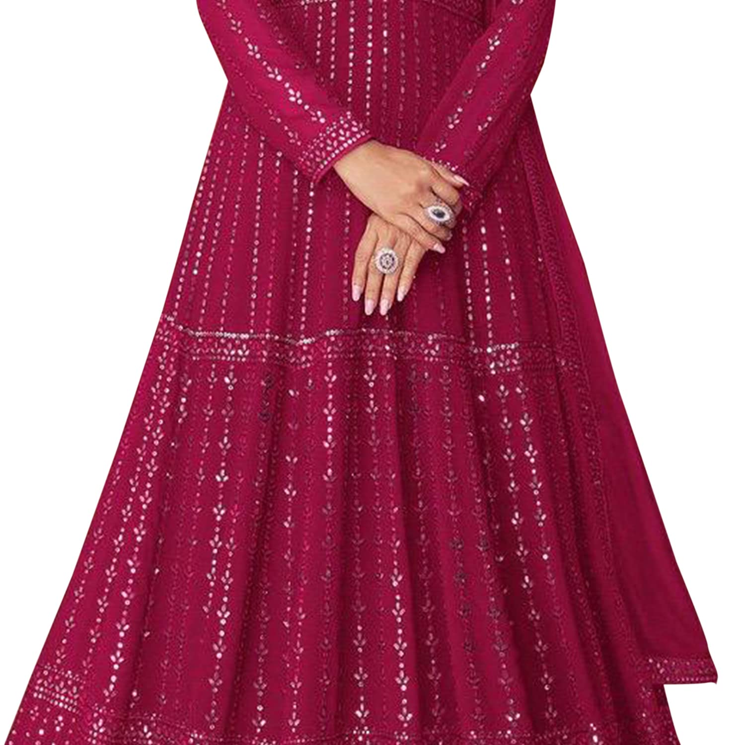 Miss Ethnik Women's Faux Georgette Full Sleeve Stitched Embroidered Floor Length Pink Anarkali Gown with Dupatta (ME-1106-Pink-L)