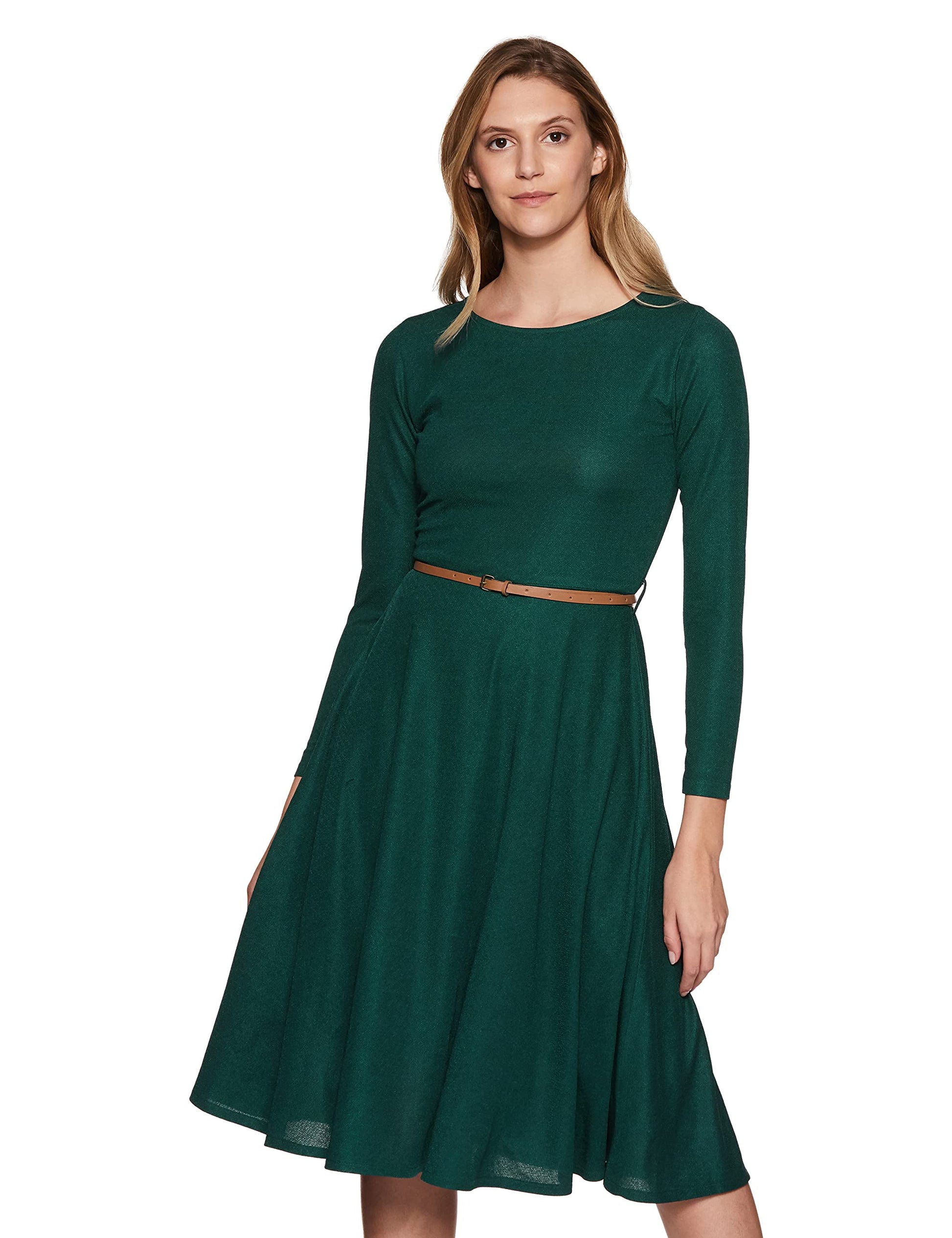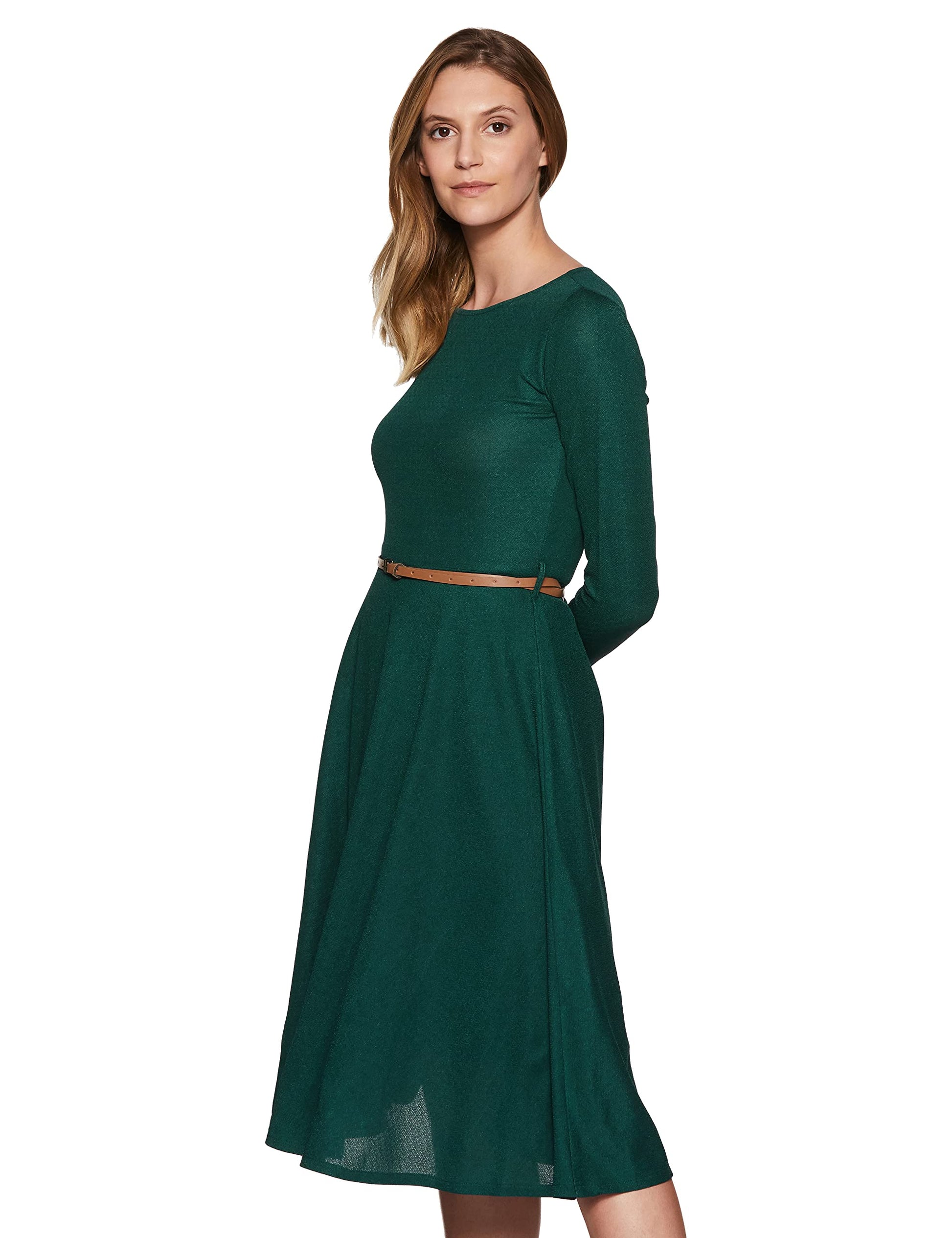 Miss Olive Women's Skater Midi Dress (MOAW18D30-19-42_Forest Green_Small)