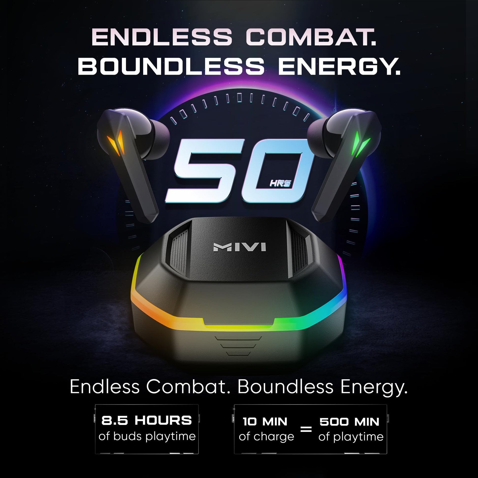 Mivi Commando X7 [Just Launched] Gaming in Ear Earbuds: 35ms Low Latency, Aurora Lights, Dual RGB,13mm Bass Drivers, 50Hrs Playtime,Type C, AI ENC, Made in India Ear buds Wireless Bluetooth Gaming TWS