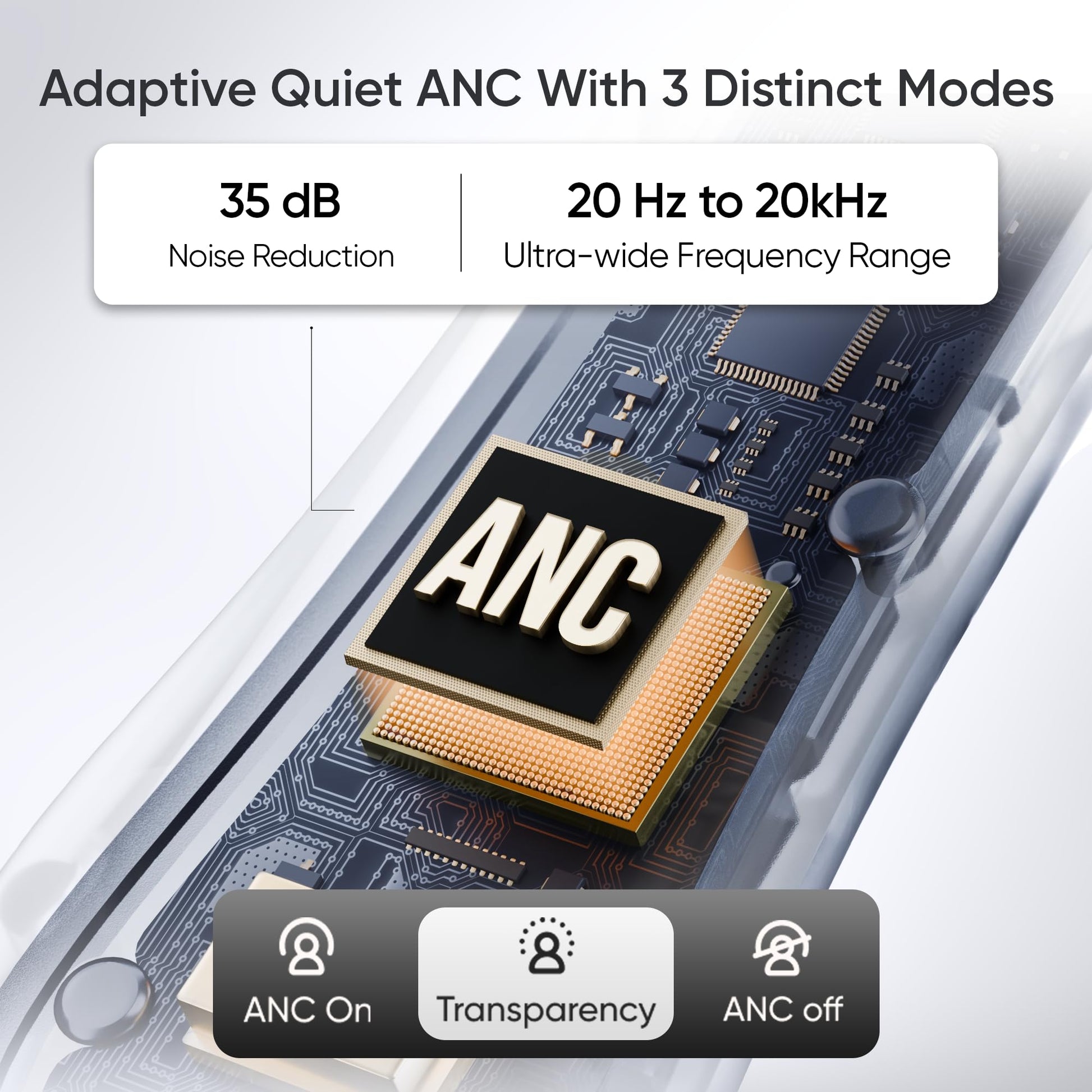 - Adaptive Quiet ANC for proactively detecting and reducing noise before it enters the ear canal. This makes it effective against consistent, predictable noises like the bustle of a metro or the commotion of traffic while commuting on the road.
