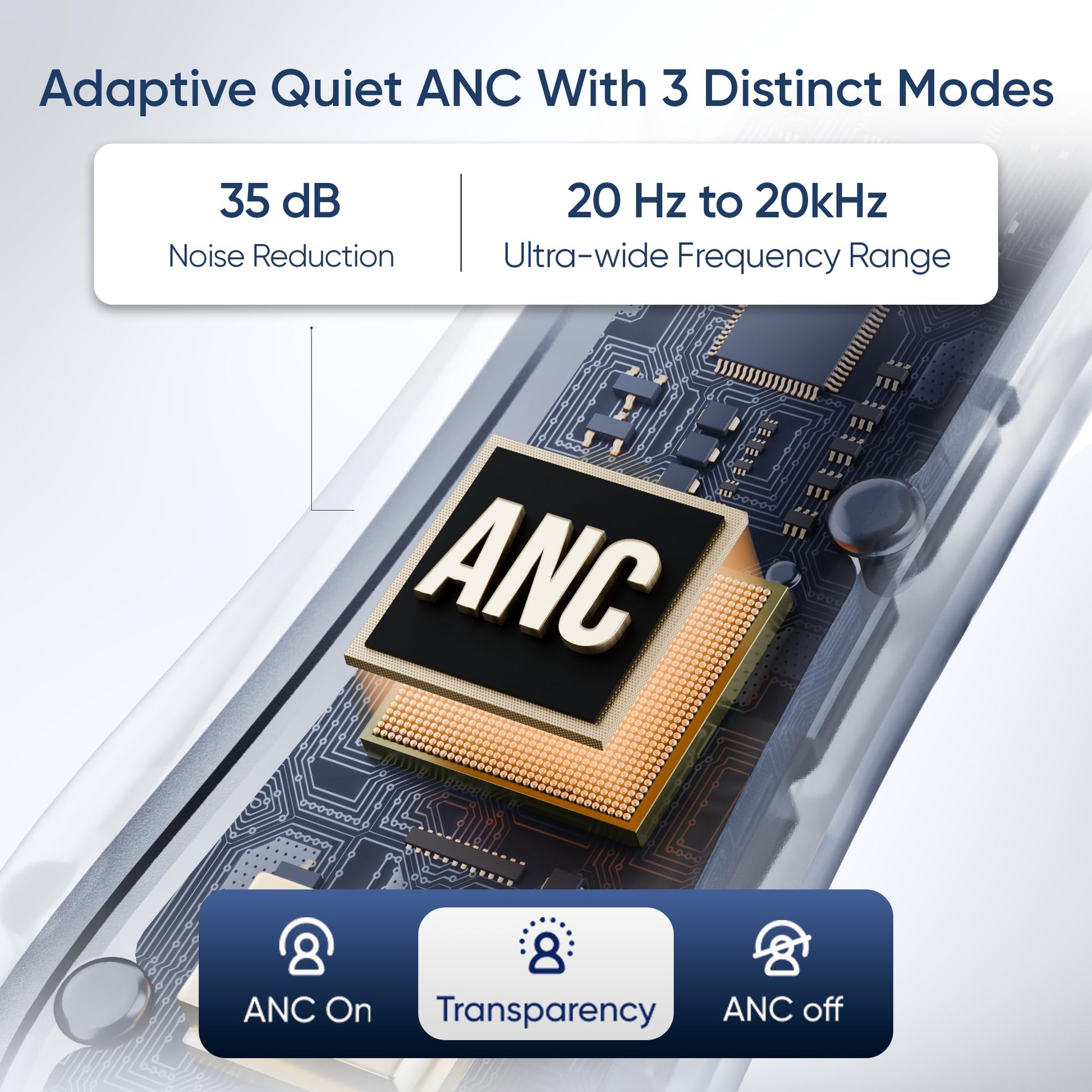 - Adaptive Quiet ANC for proactively detecting and reducing noise before it enters the ear canal. This makes it effective against consistent, predictable noises like the bustle of a metro or the commotion of traffic while commuting on the road.