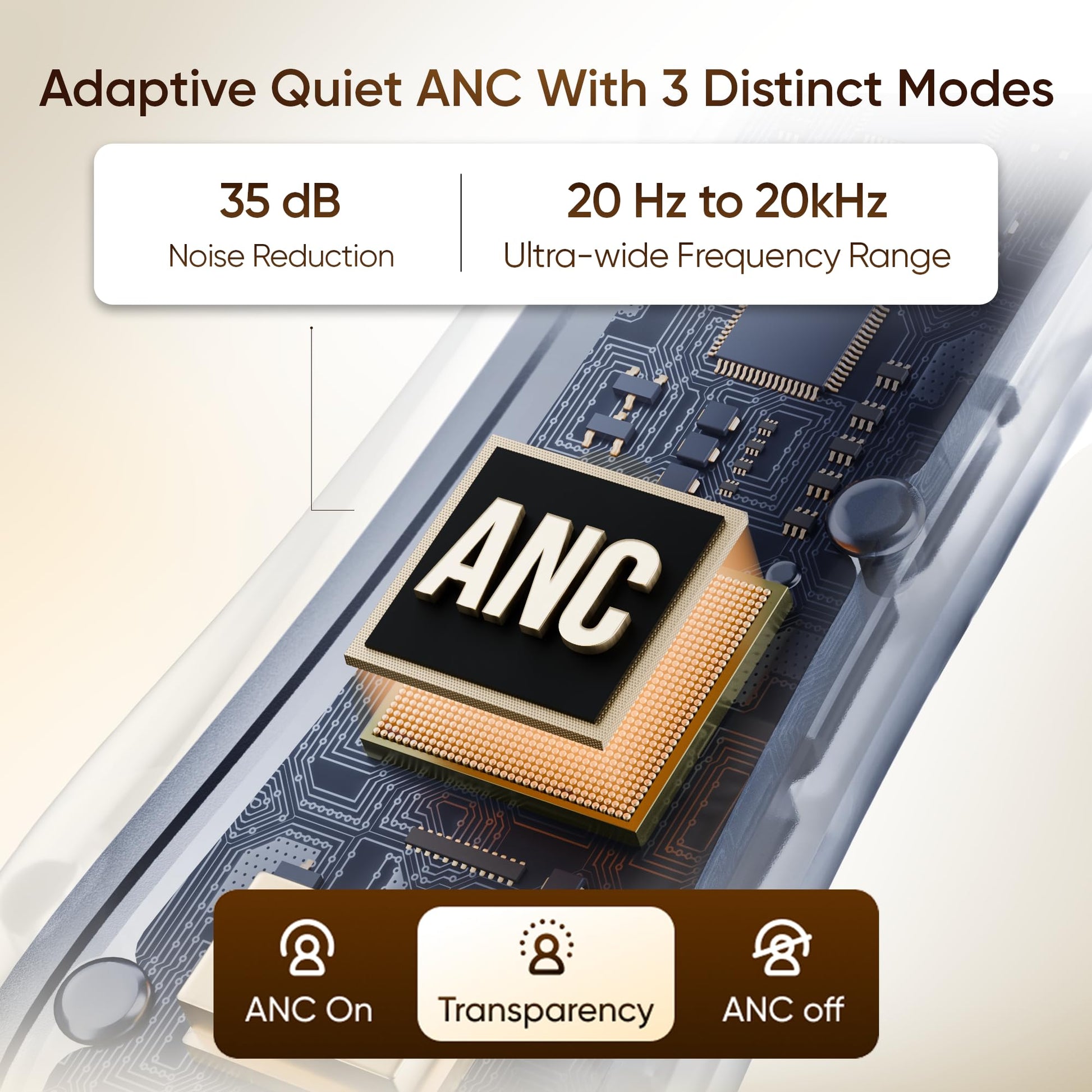 - Adaptive Quiet ANC for proactively detecting and reducing noise before it enters the ear canal. This makes it effective against consistent, predictable noises like the bustle of a metro or the commotion of traffic while commuting on the road.