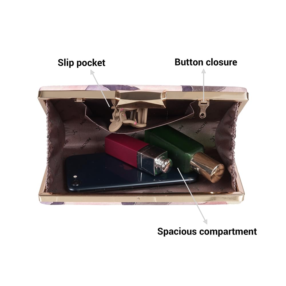 - Premium Materials: Constructed with high-quality fabric and a sturdy button closure, this clutch adds durability to its luxurious look.
