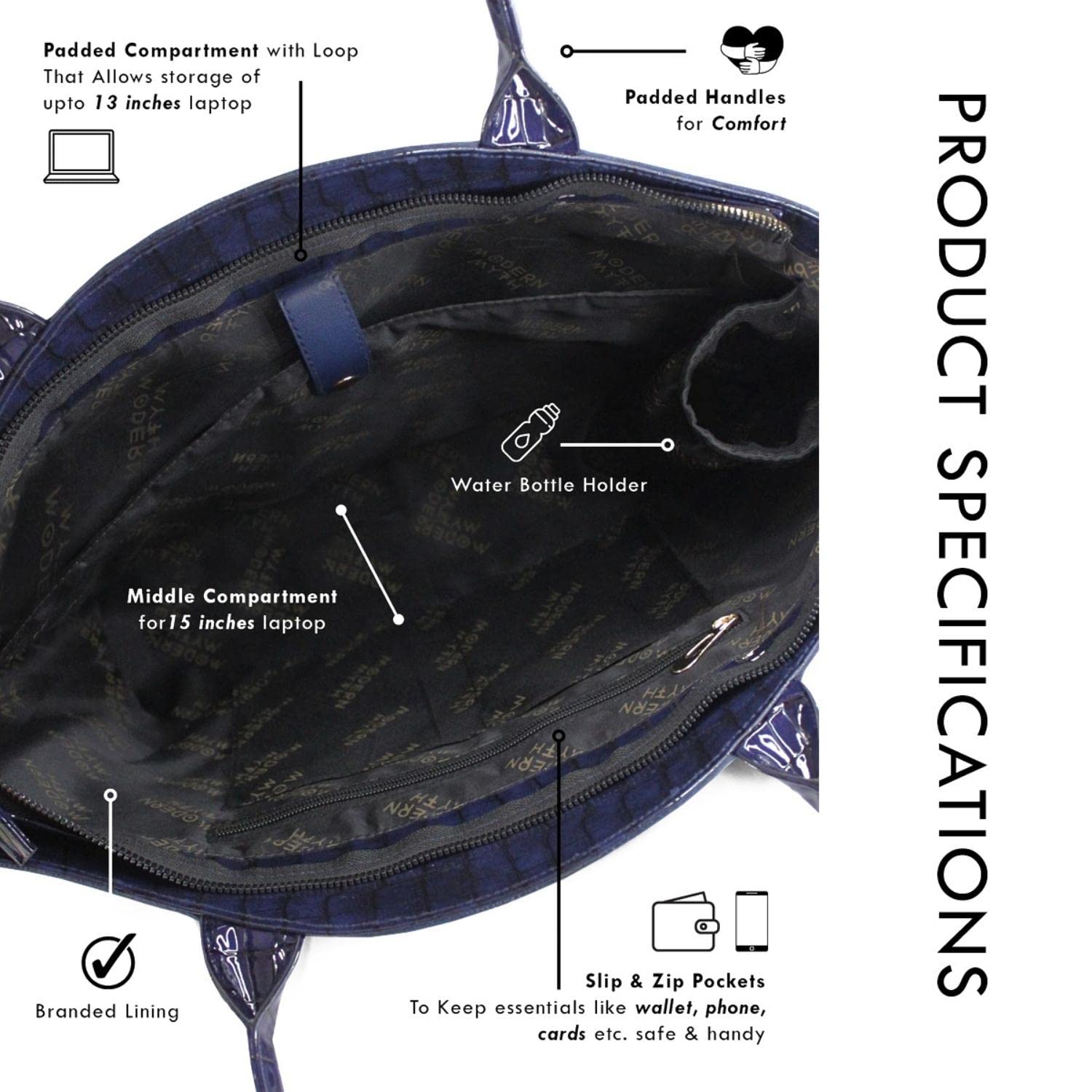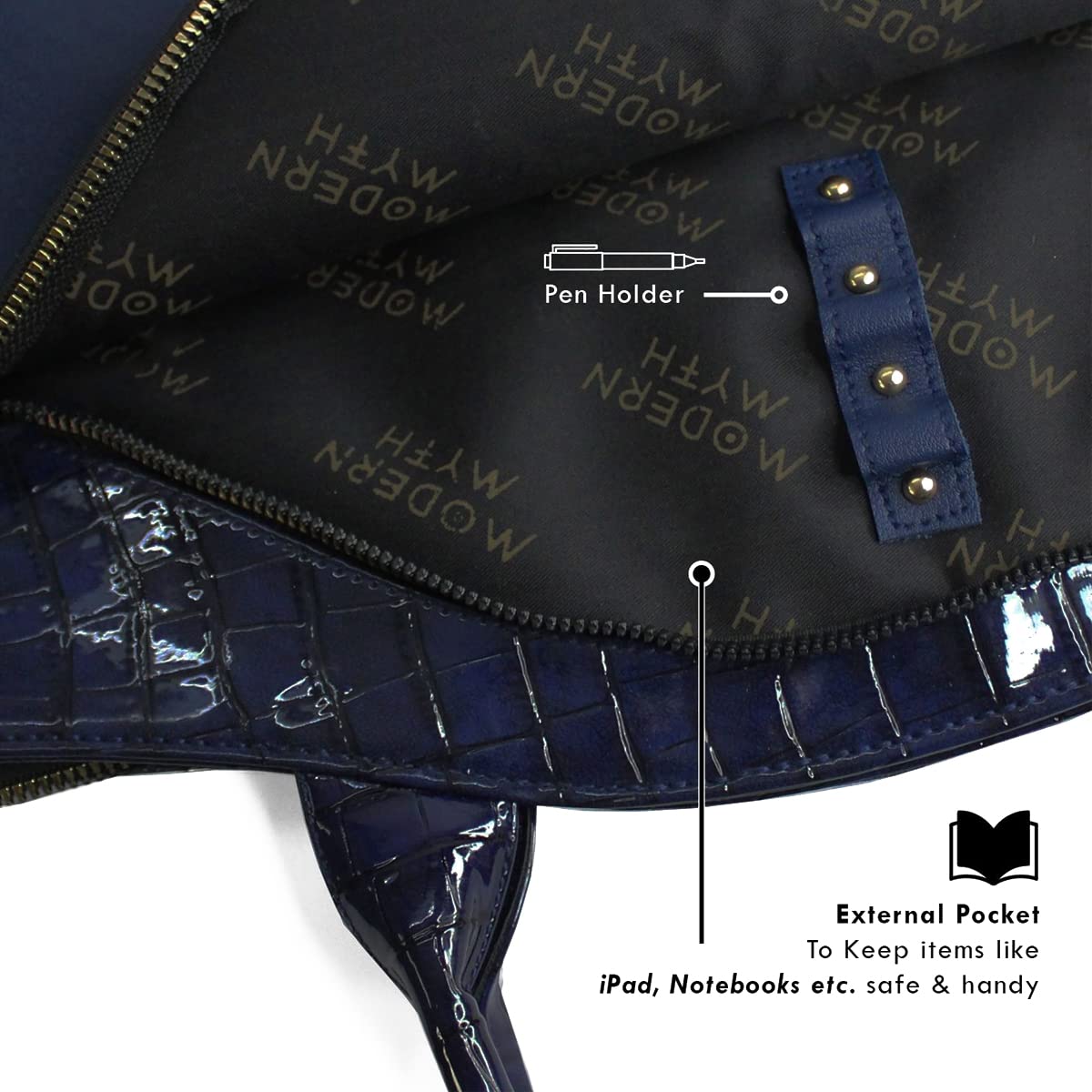 Modern Myth Chloe Croco Finish Blue Everyday Office Tote for Girls & Women