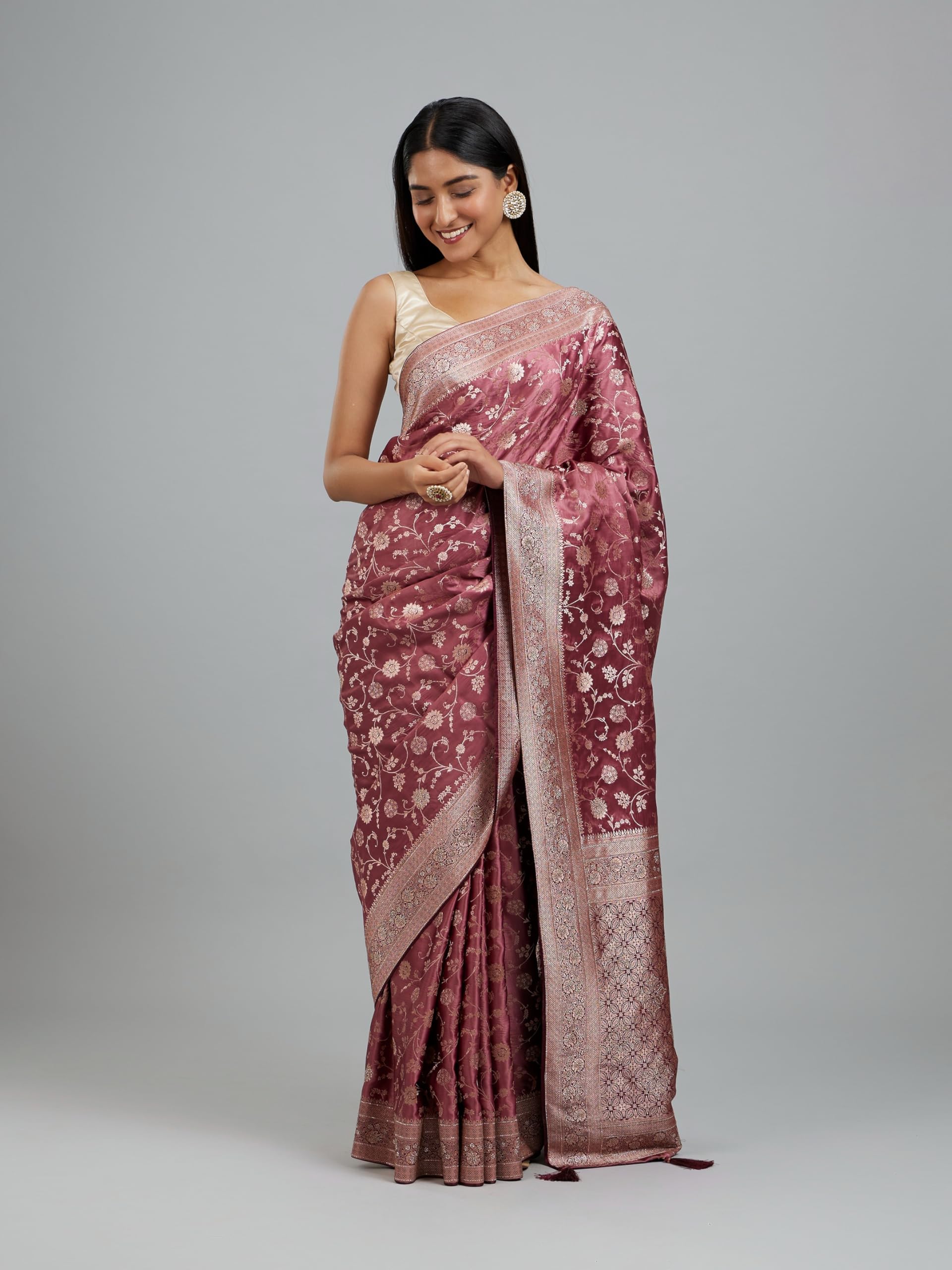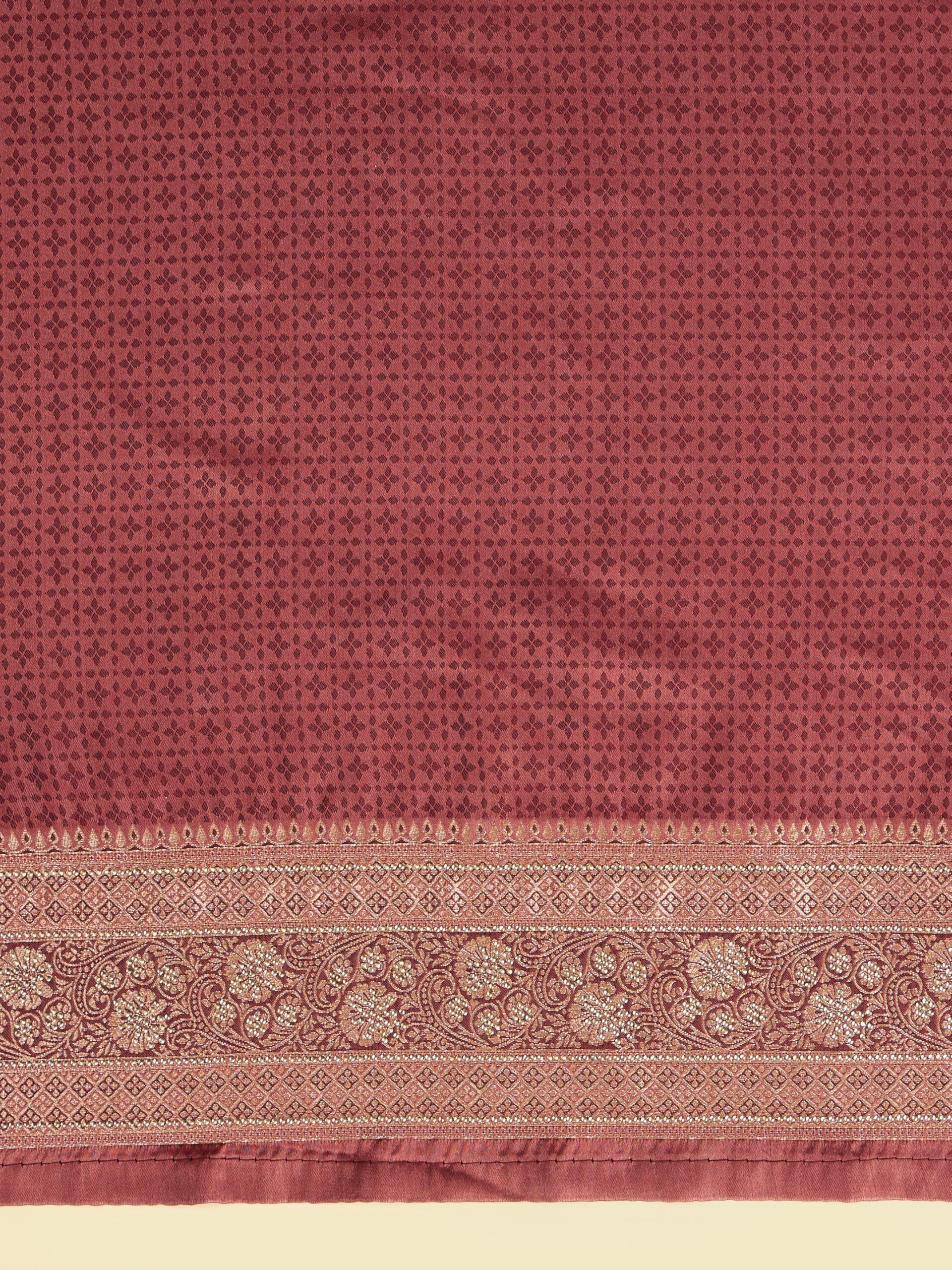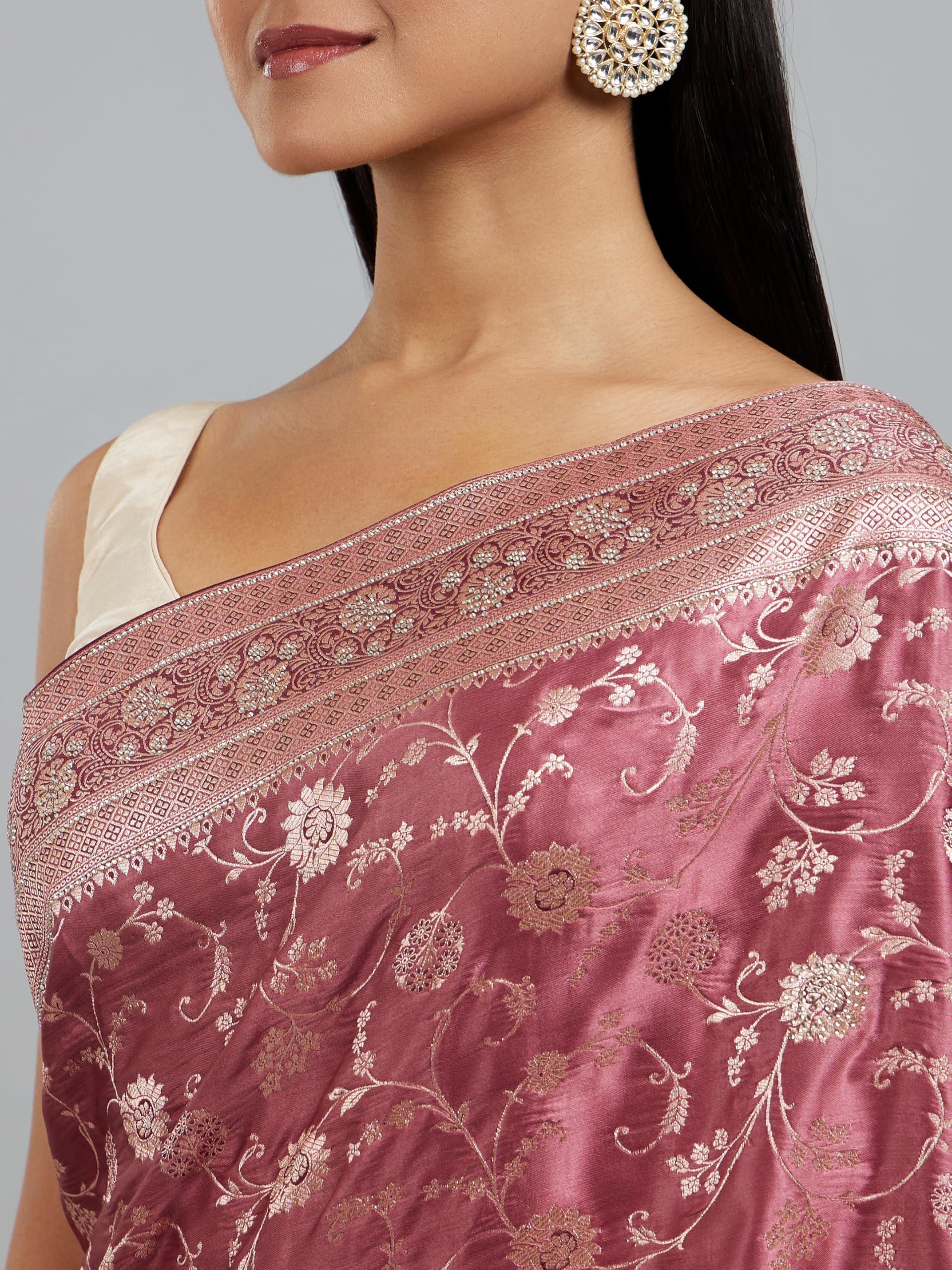 - Design:-Wrapped in elegance, this Dusty Pink Saree sets a new sartorial standard. Perfect for gala dinners or festive get-togethers, its pretty hue is a treat to the eyes. Comes with an unstitched blouse fabric to let you curate a look that's uniquely 'you'. An embodiment of grace, this will be your go-to for any celebration. Note: Saree does not include any accessories.