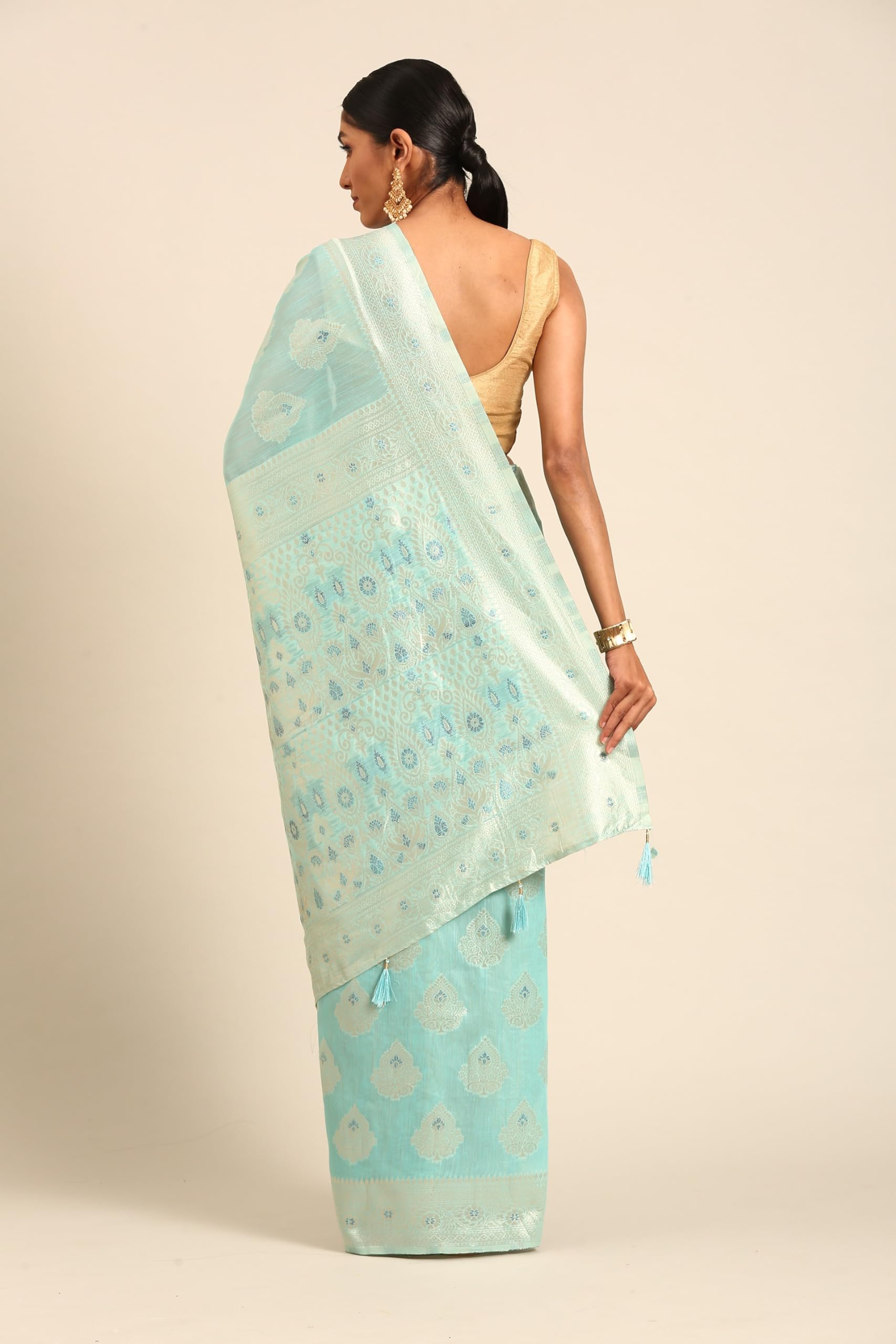 MOHEY Women's Blue Art Silk Zari Weave Saree (Blue)