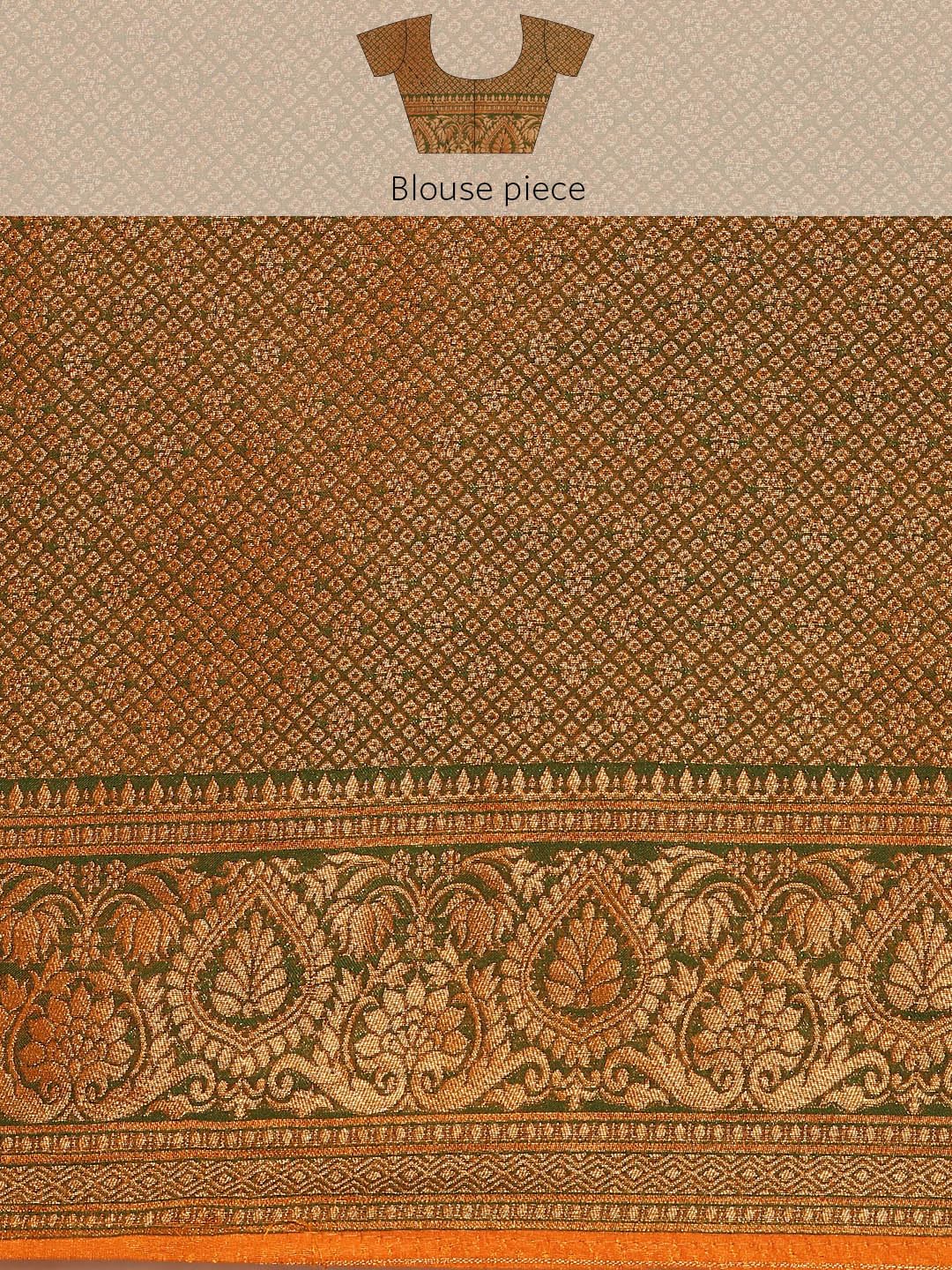 - Design: This Mustard Yellow saree features a bel buti pattern all over the body. The border is enhanced with paisley like floral design and a trimmed latkan. Accessorize with sleek gold jewellery for a balanced look. Perfect for cultural events or celebrations, this saree showcases vibrant village life through its intricate embroidery and embellishments.