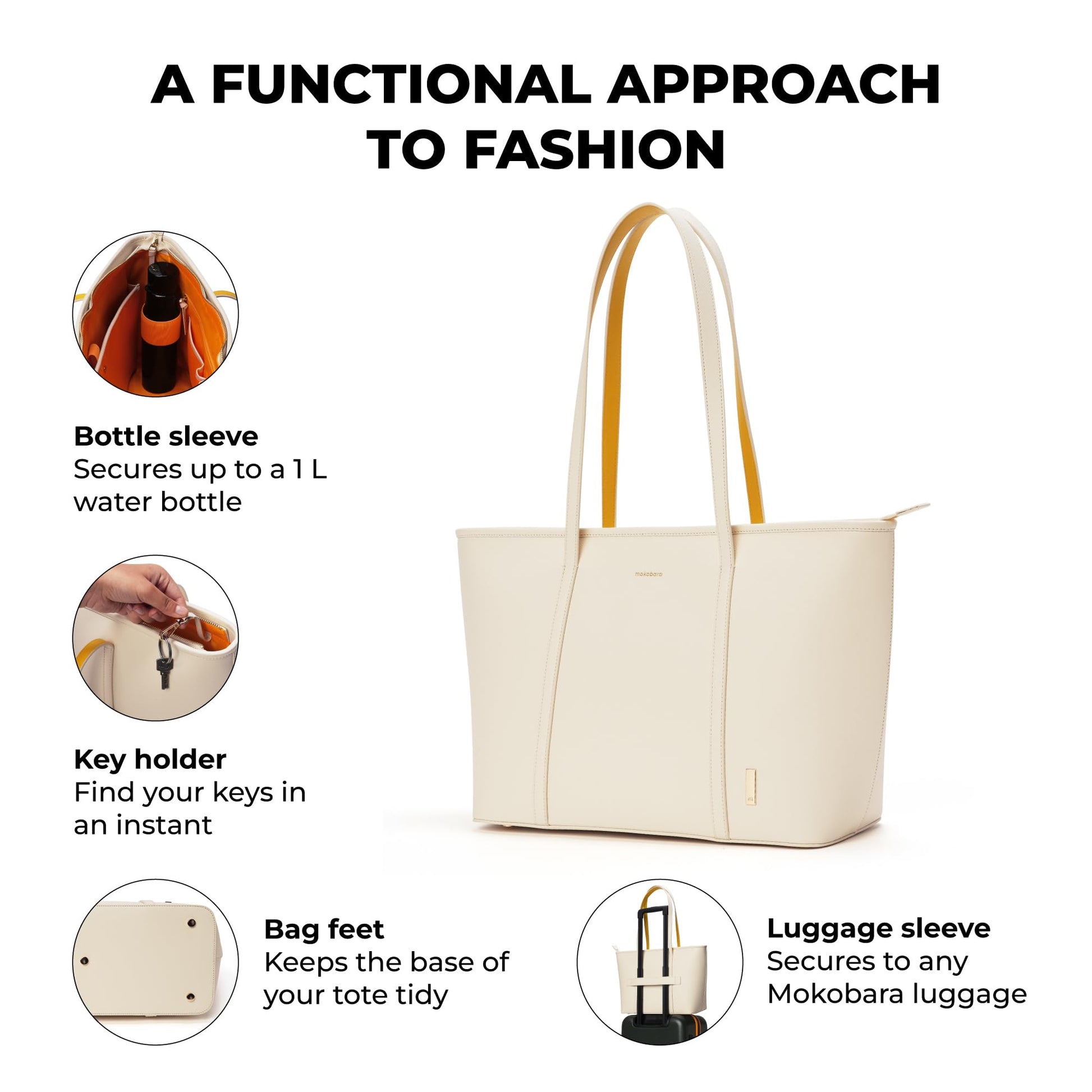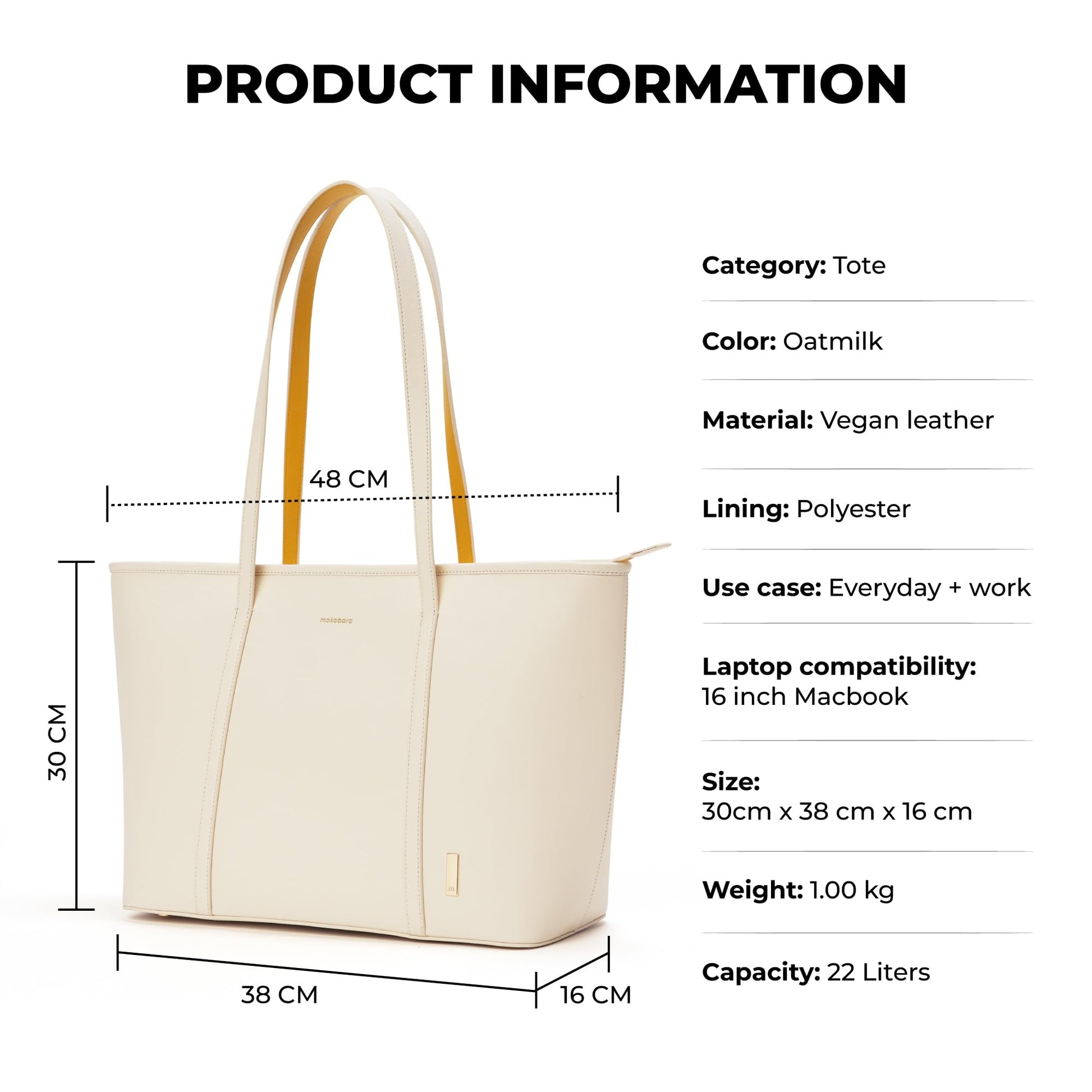 MOKOBARA The Astrid Tote Vegan Leather Oversized Black Tote Bag for Women (Oatmilk)