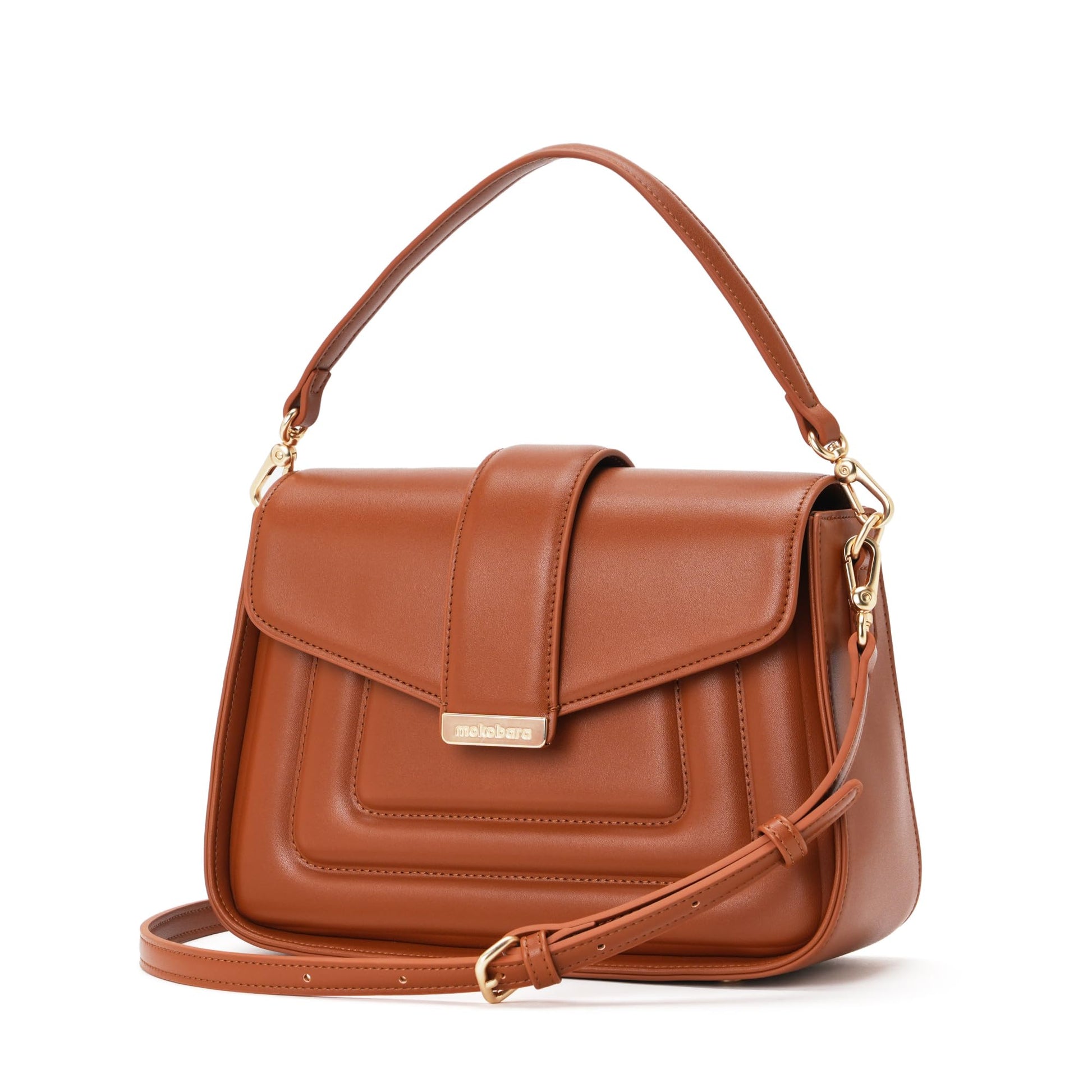 MOKOBARA The Reign Handbag Vegan Leather Top Handle Stylish Women Shoulder Bag Top Handle Purse (Truffle), Brown