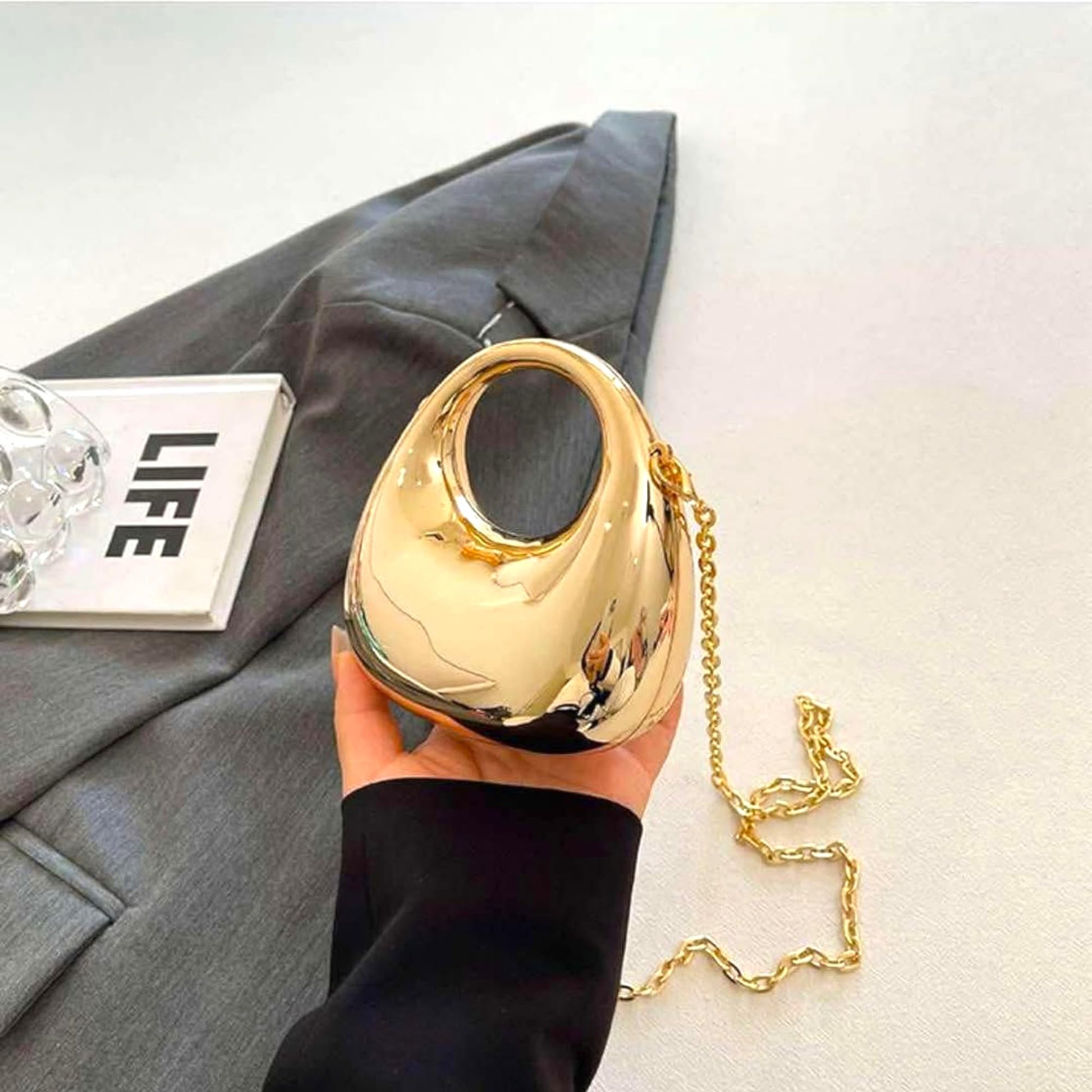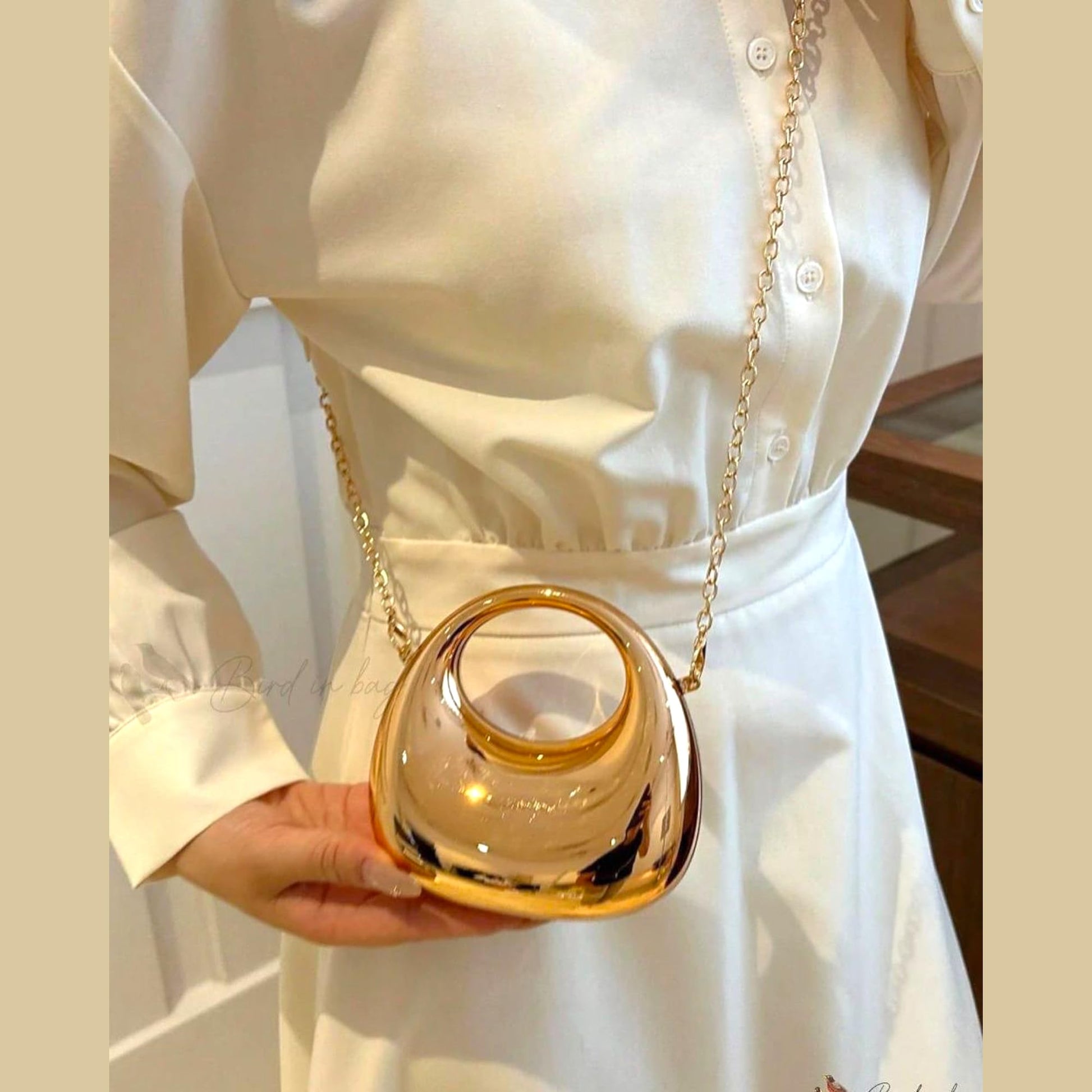 MOON -shaped Acrylic Women's Crossbody Sling Bag – Gold-tone Pleated Metallic Mini Clutch Purse, Fashion Versatile Shoulder Evening Handbag , Ladies Lipstick Case, Affordable Gift For Girls (GOLDEN)