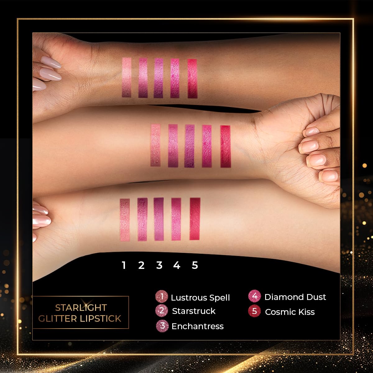 MyGlamm Manish Malhotra Starlight Glitter Lipstick - Enchantress (Plum Shade) | Non Drying, Creamy Pigmented Bullet Lipstick With Vitamin E (4.2g)