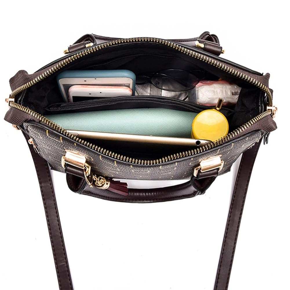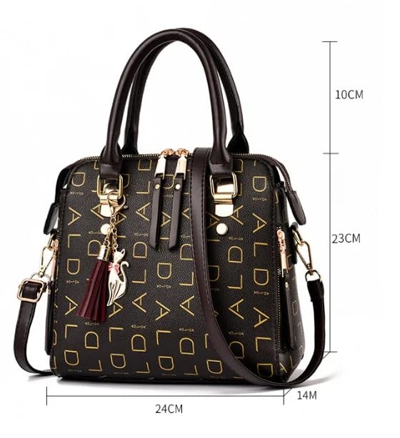- size of HandBag Size - 24 x 13 x 23 cm, Material: High-quality Pu, Artificial leather is used to make this ladies; fashion bag. The colour is vibrant and sparkly, and it feels cosy. 3 Main compartments and 1 inner pocekt. Fashion Handbags Tote Purse Top Handle Shoulder Bag are stylish, innovativ, and lovely. ideal for carrying along and touring.