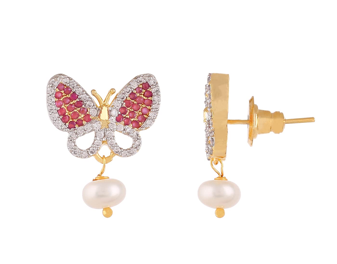Natural Fresh Water Pearls Peacock Design Side Piece Necklace Set For Women Girls (Red)
