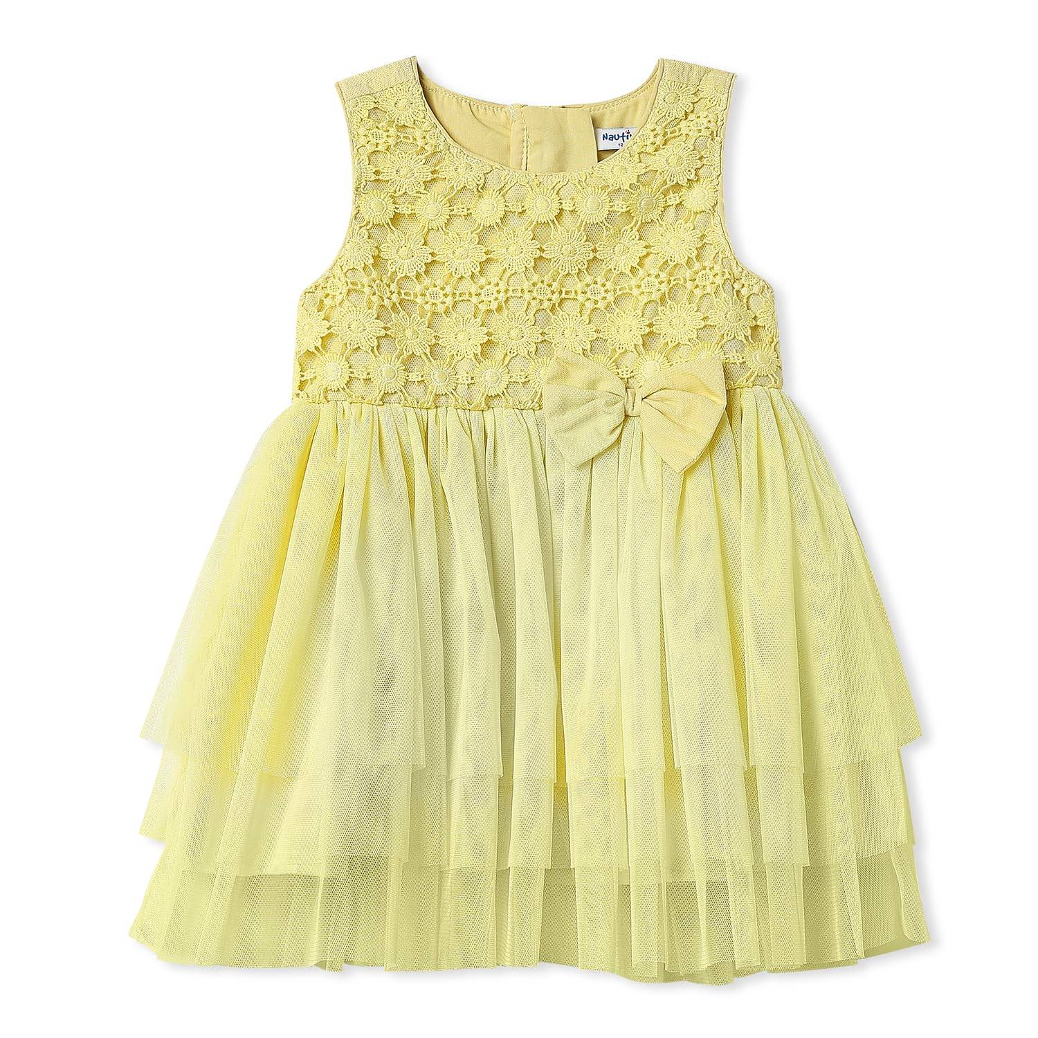nauti nati Girl's Polyester A-Line Knee-Length Casual Dress (NNNGTW060066CW2_Yellow