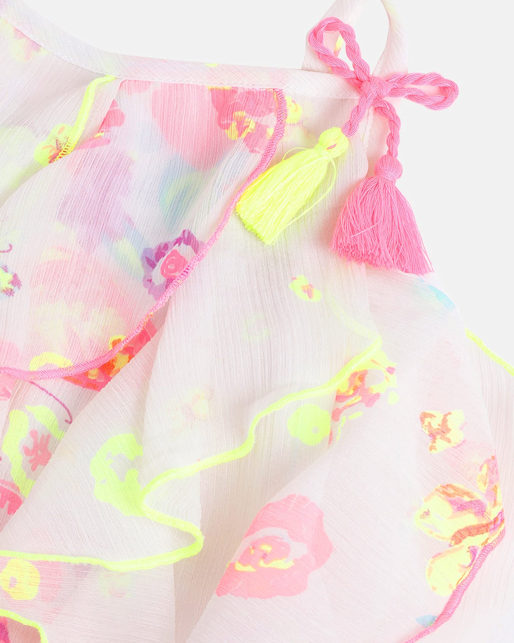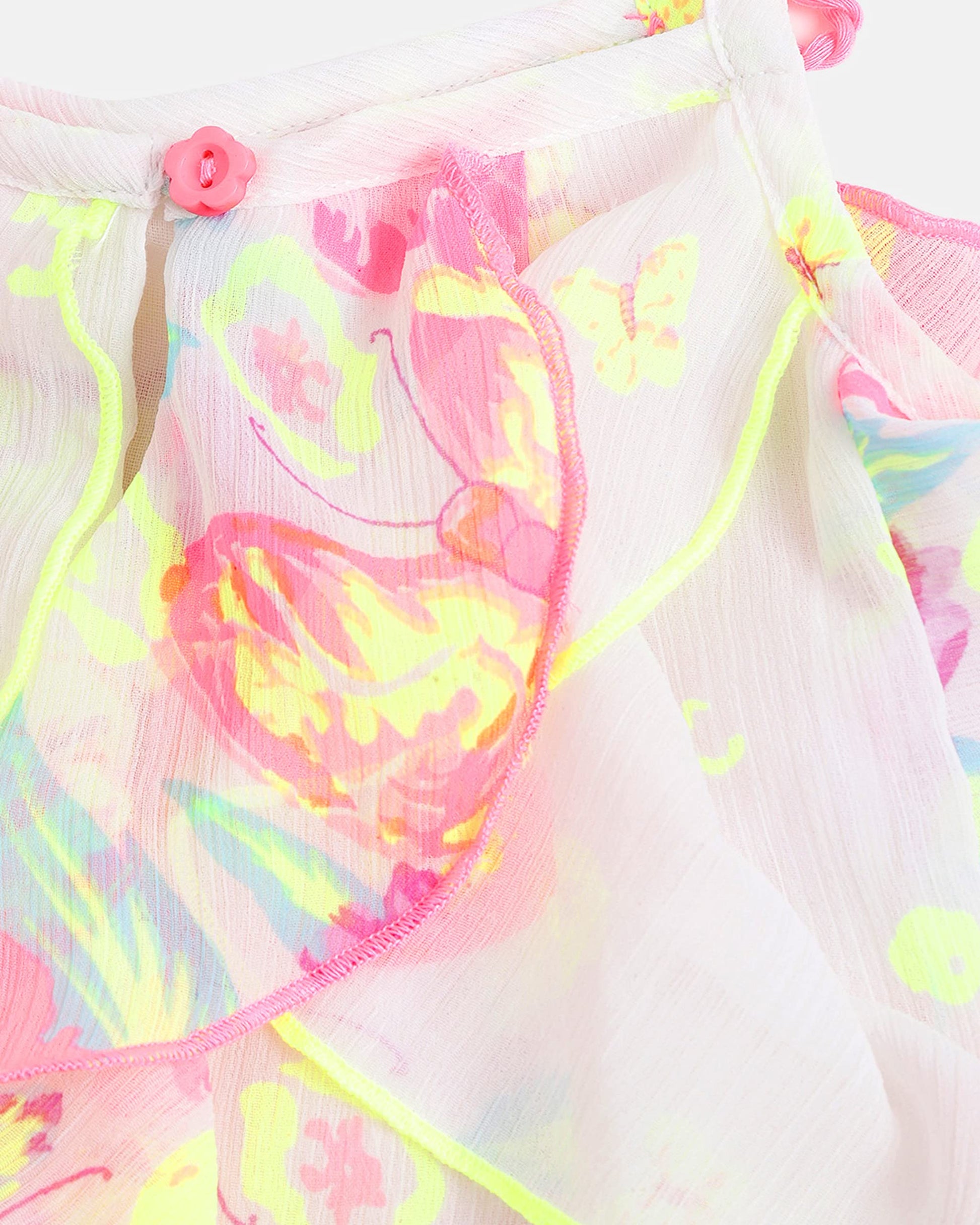 This summer get ready to elevate your little one’s everyday look with Nauti Nati’s new collection. From fancy casuals to cute dresses – every design in this collection is a celebration of colours and patterns. This summer dress comes with tassels and all over ruffles. This dress is sleeveless which makes it ideal for summers, and it comes with adjustable straps. Make sure your baby girl steps out with cute pair of shoes this summer matching this one-piece outfit!