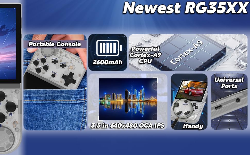 New World Anber-nic RG35XX 2024 Retro Handheld Game Console Linux System HDMI and TV Output 3.5 Inch IPS Screen 64G TF Card 5500+ Classic Games 2600mAh Battery, Best Gift for Child