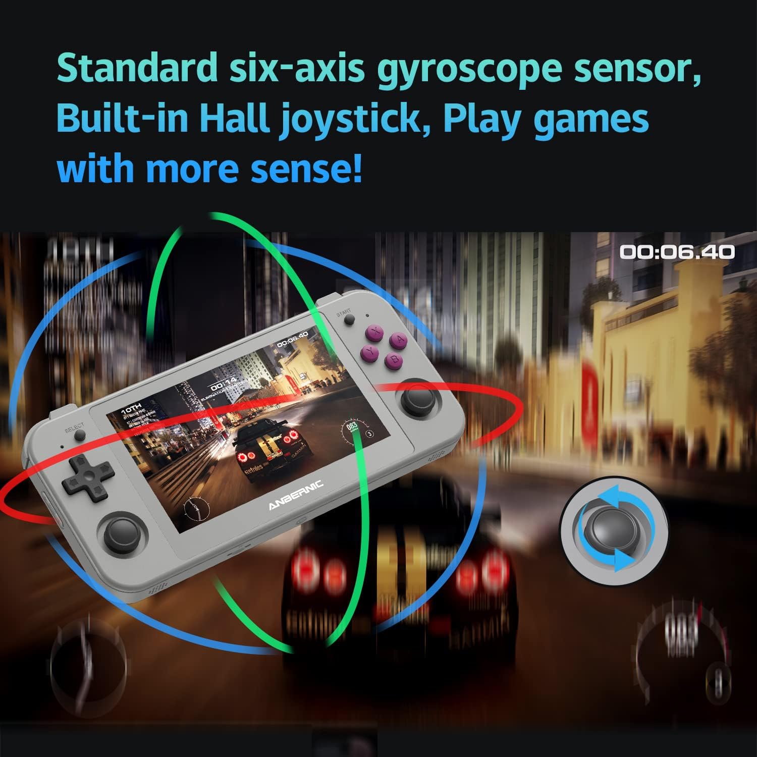 - [ Android 12 System Compatible with Google Play Store ]: RG505 built-in game front-end, compatible with multimedia network play and Google Play Store. In addition, the RG505 has a built-in Hall joystick and 6-axis gyroscope sensor to provide users with a better gaming experience.