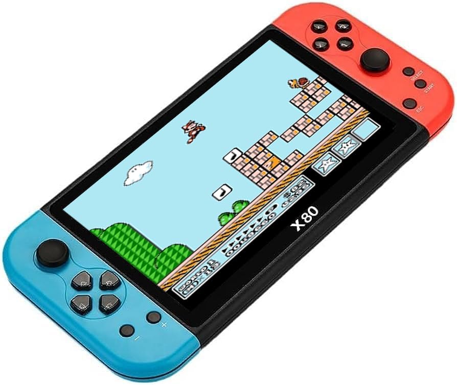 New World X80 Hand Video Games Console Handheld Game Player 7 Inch Full-Color Disply Built-in 20000+Games TV output 8 Emulator Support PS1