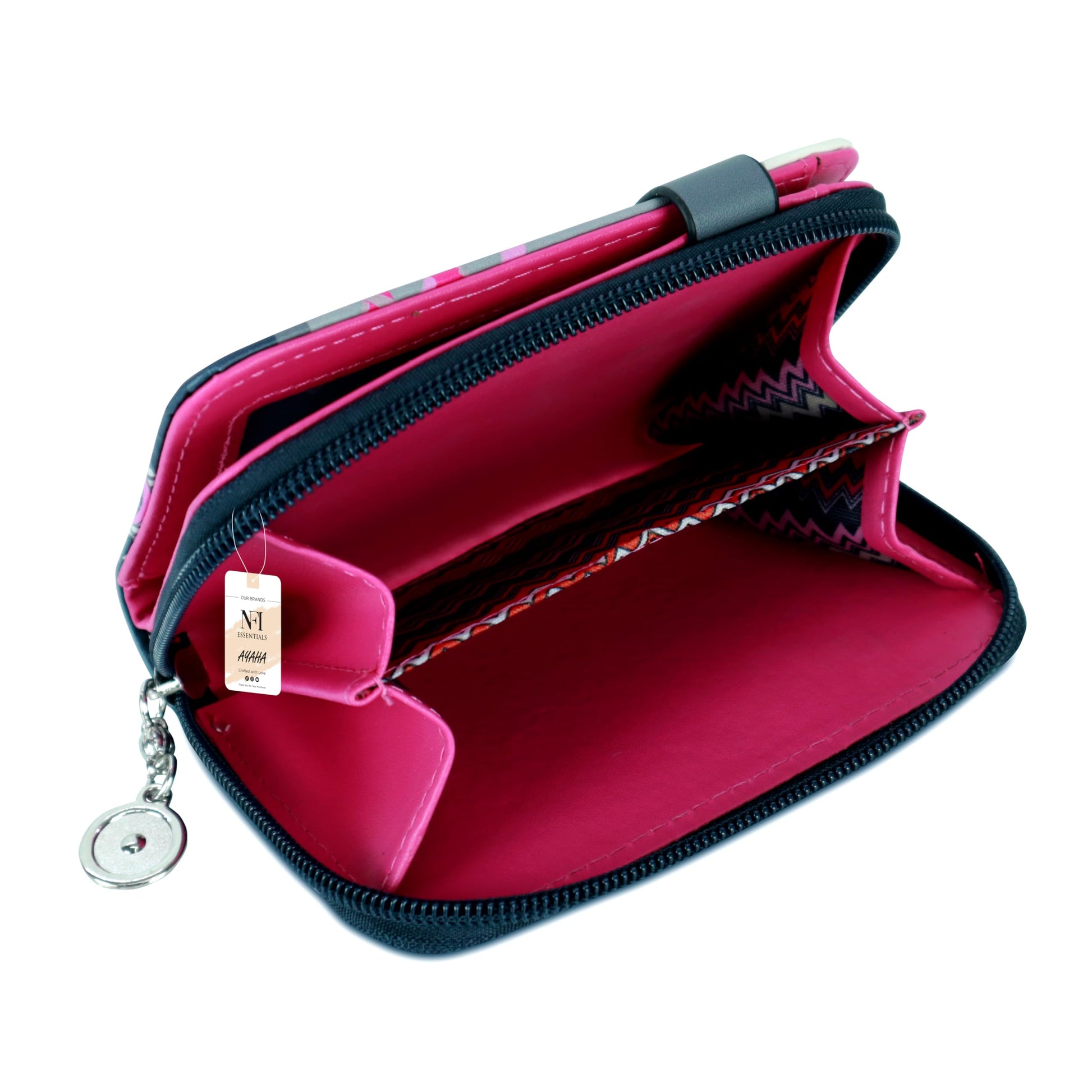 NFI essentials Small Wallet for Women, PU Leather Printed Mini Zipper Wallet for Girls, Credit Card Holder Organizer Coin Purse for Girls
