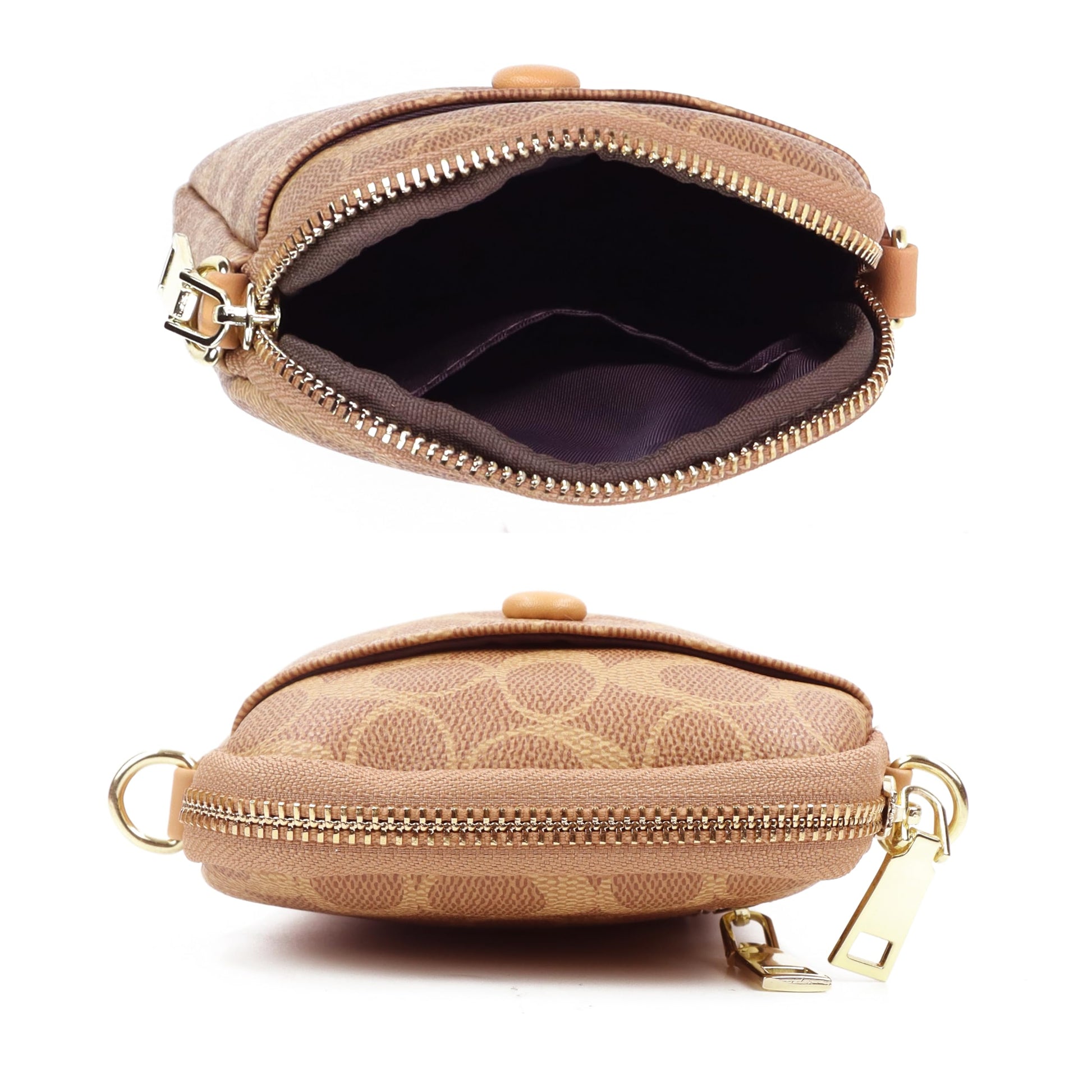 - [ Design ] The classic printed design adds more elegance for this crossbody phone wallet bag. 1 snap closure front phone pocket, 1 main zipper compartment, 1 inner pocket inside main pocket pocket, 1 zipper pocket on back side. Perfect size to storage your napkin paper, lipsticks, coins, cards, keys, etc. Lightweight and easy to carry.