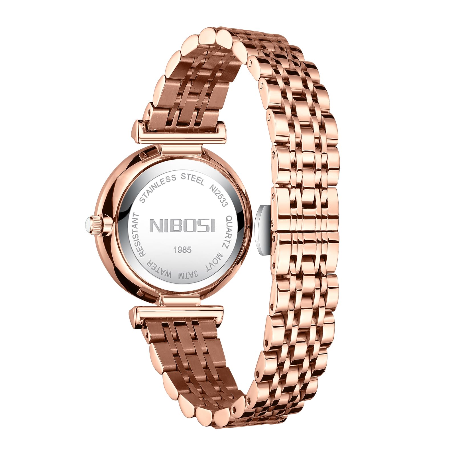 NIBOSI Stainless Steel Women's Analogue Wrist Watch - Rose Gold Dial With Stylish Diamond Studded Design for Girls, Ladies & Miss