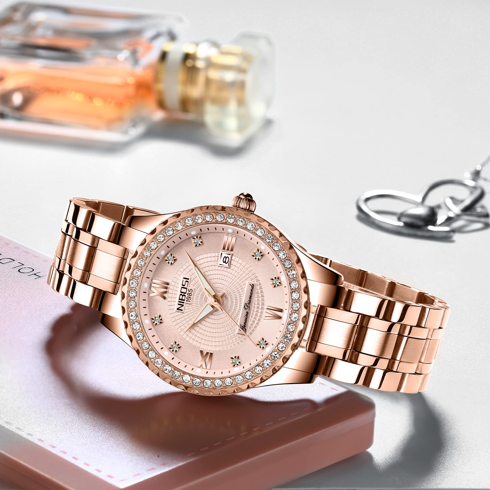 - ๐ The surprises of life:NIBOSI rose gold dial women's watch is presented in an exquisite package, The ideal surprise for yourself, your friends, your mother, your loved one, your family on all kinds of holidays and anniversaries. Bringing a unique taste of life to her.