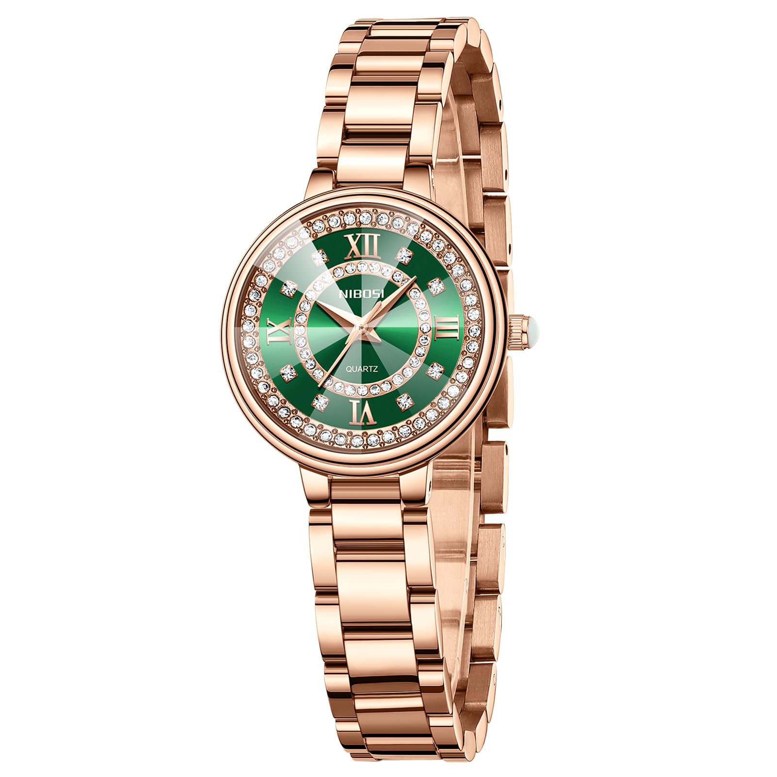 NIBOSI Women Watches Rose Gold Stainless Steel Analog Quartz Luxury Diamond Latest Watch for Ladies Luxury Stylish Waterproof (Rose Green)