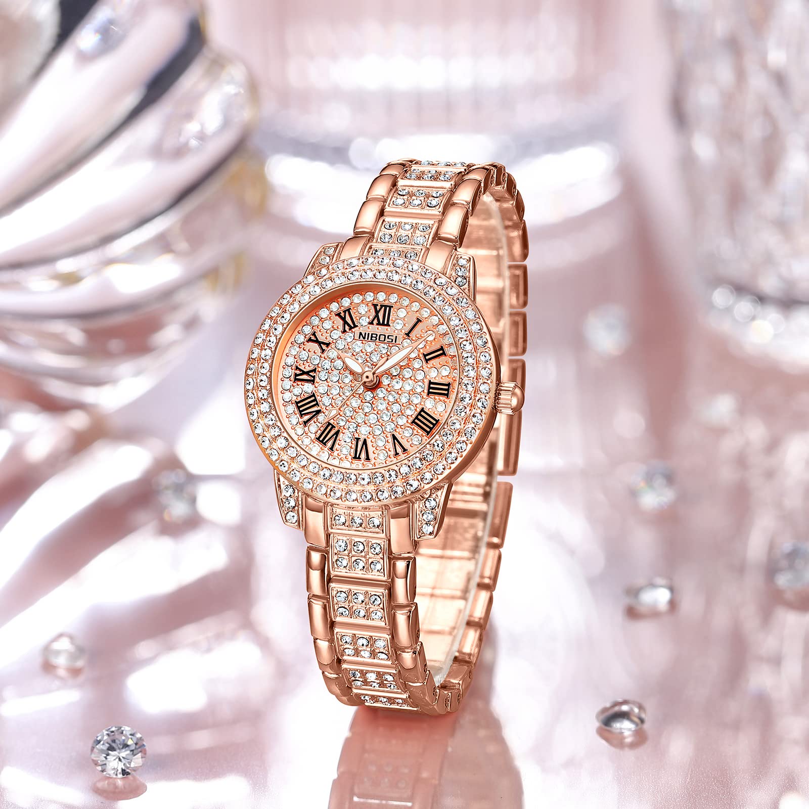NIBOSI Women Wrist Watches Analog Stainless Steel Rose Gold Band and Dial Women's Watch for Girls&Miss&Ladies Diamond Studded with Stylish Girlfriend Watches