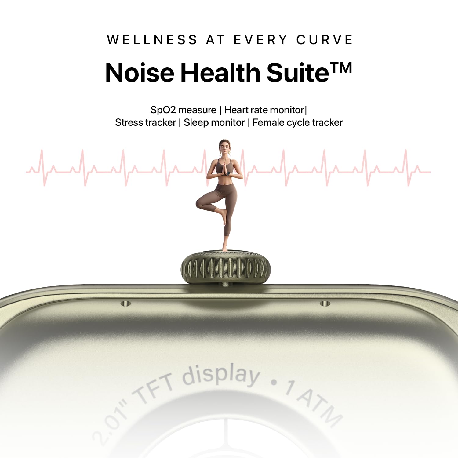 - Comprehensive Health Tracking – Track SpO₂, 24x7 heart rate, stress, sleep, and menstrual cycles via Noise Health Suite to stay on top of your wellness goals.