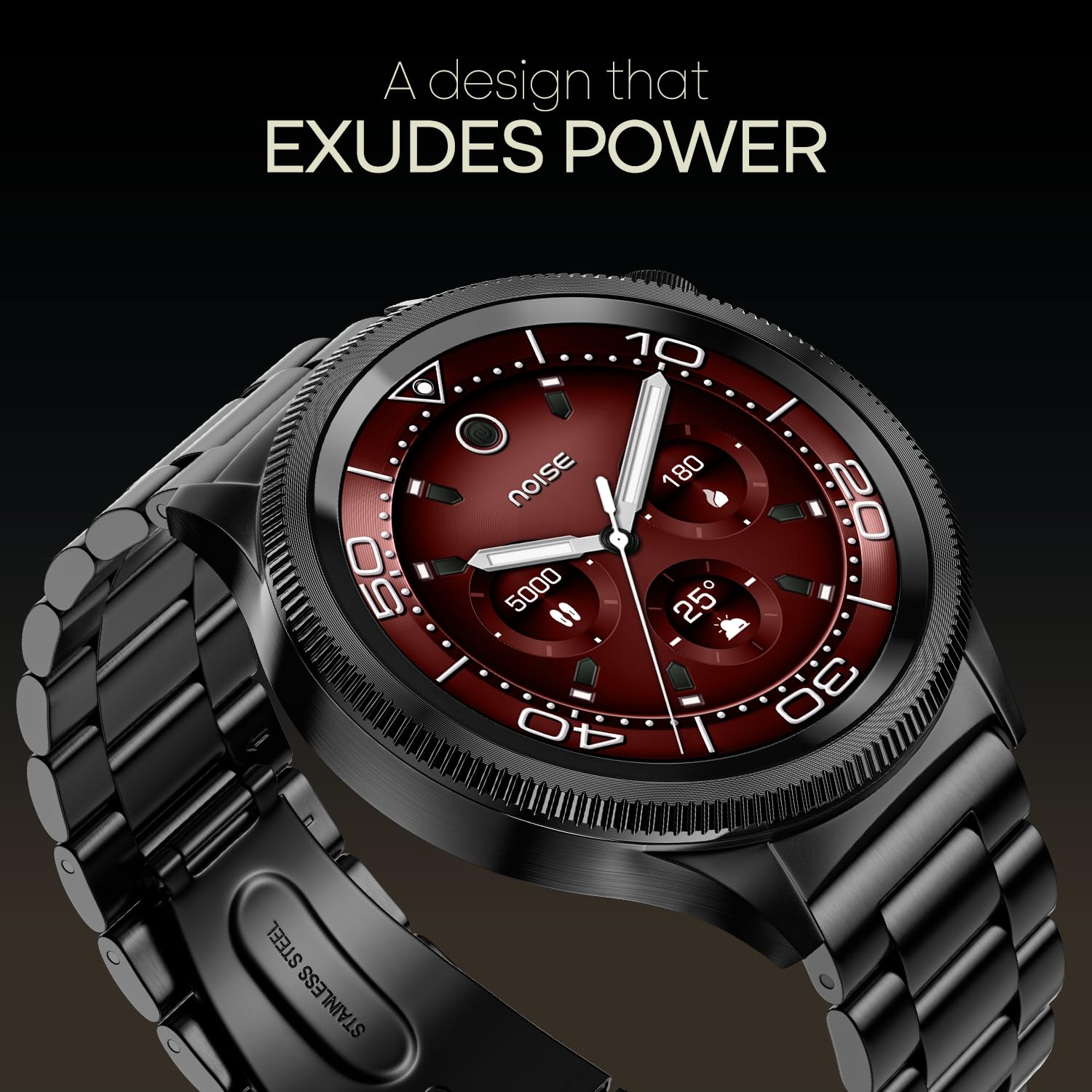 Noise Newly Launched Halo 2 Smartwatch 1.43" AMOLED, 1st Rotating Dial (Axe-cut Bezel Design), Stainless Steel Build, Menu Transition Animations Effects, BT Calling, Health Suite (Elite Black)