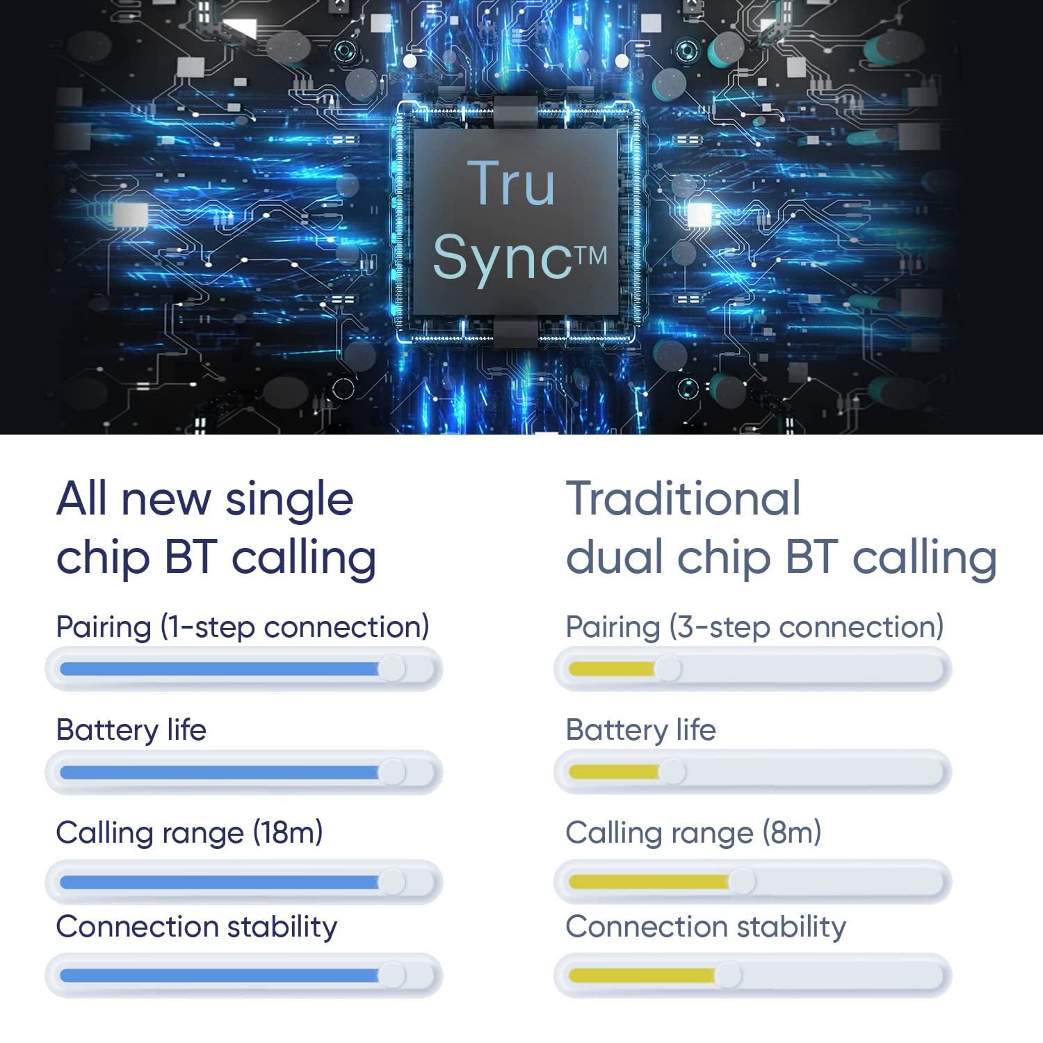 - Tru Sync: Now connect with the world in a smart way, thanks to Tru Sync technology that ensures faster and stable connection and low power consumption.;Smart DND: Take a break when you want to and get uninterrupted sleep time.