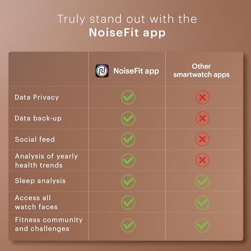 - BT Calling: Stay connected on the go making every call effortlessly convenient.;NoiseFit app: Connect with the NoiseFit app where your health data and privacy are always protected. Unlock your peak potential by participating in challenges, track your progress, and keep pushing your limits with a community of fitness enthusiasts.